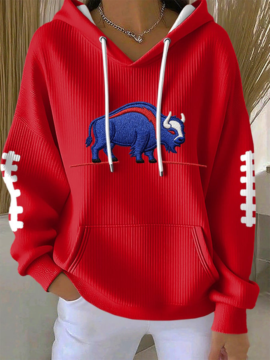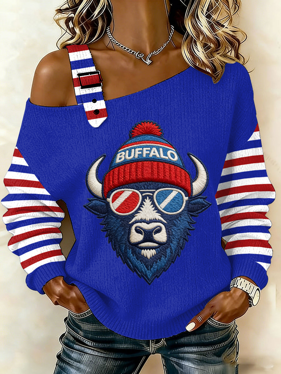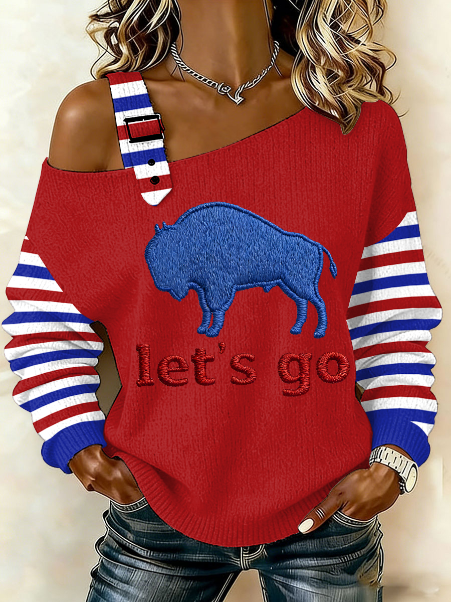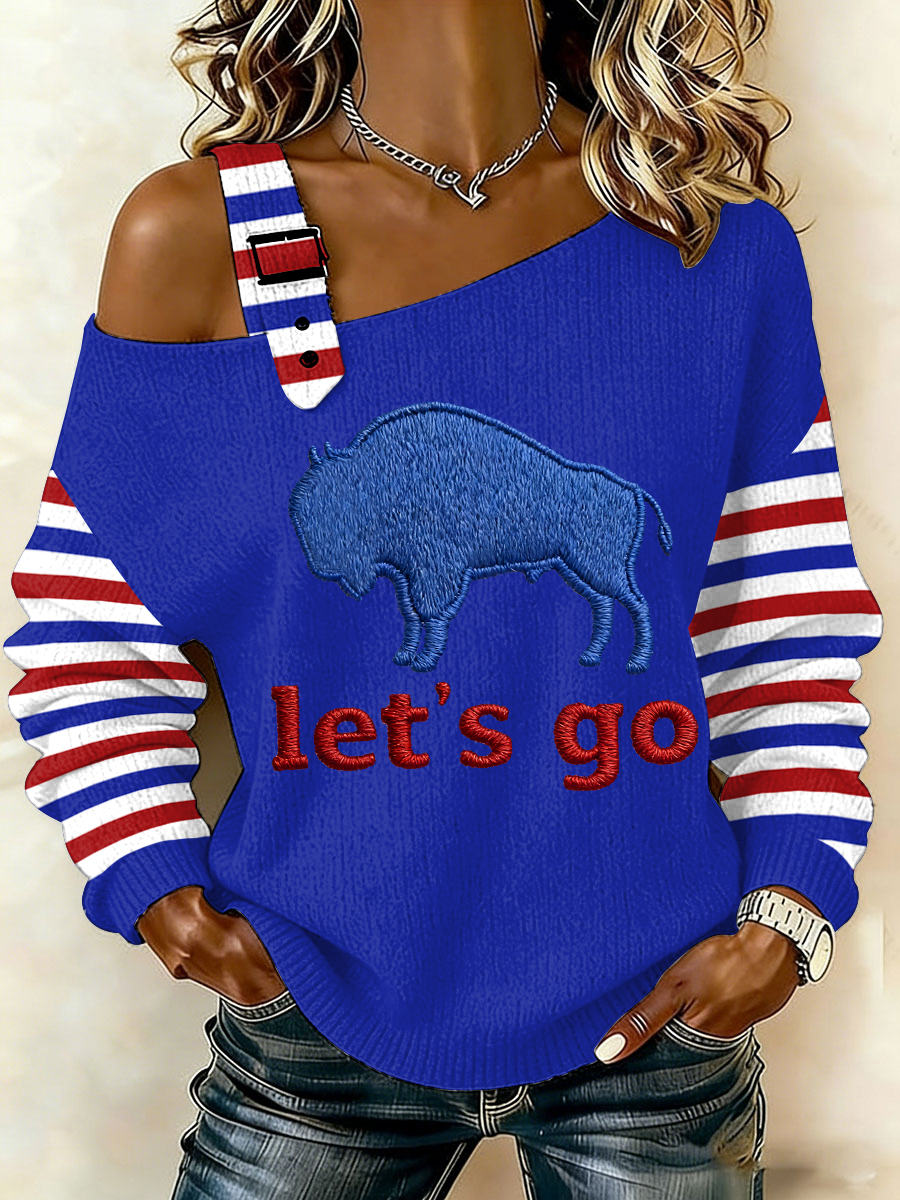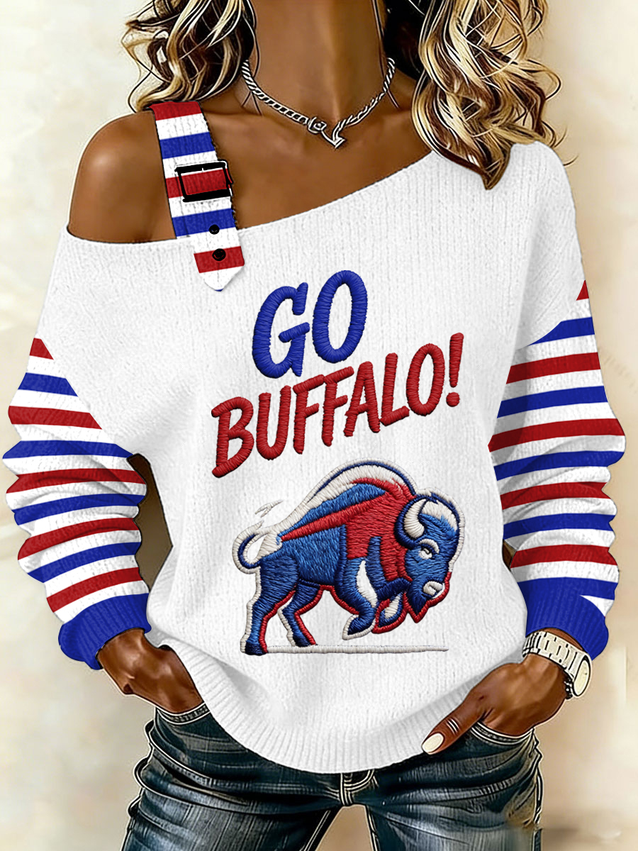 Women's Go Buffalo Stripes Print Football Fans Gameday Casual Off-Shoulder Top