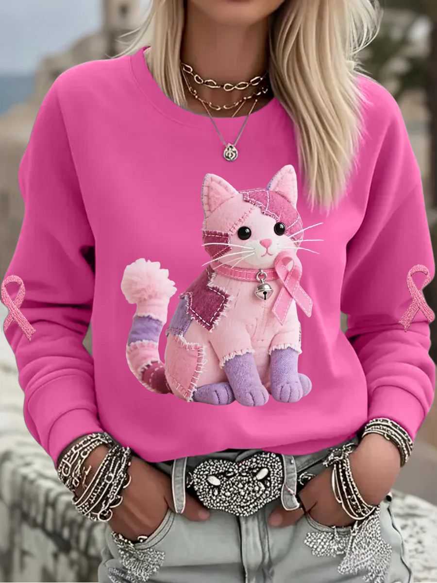 Women's Pink Cat Pink Ribbon Breast Cancer Awareness Support Sweatshirt