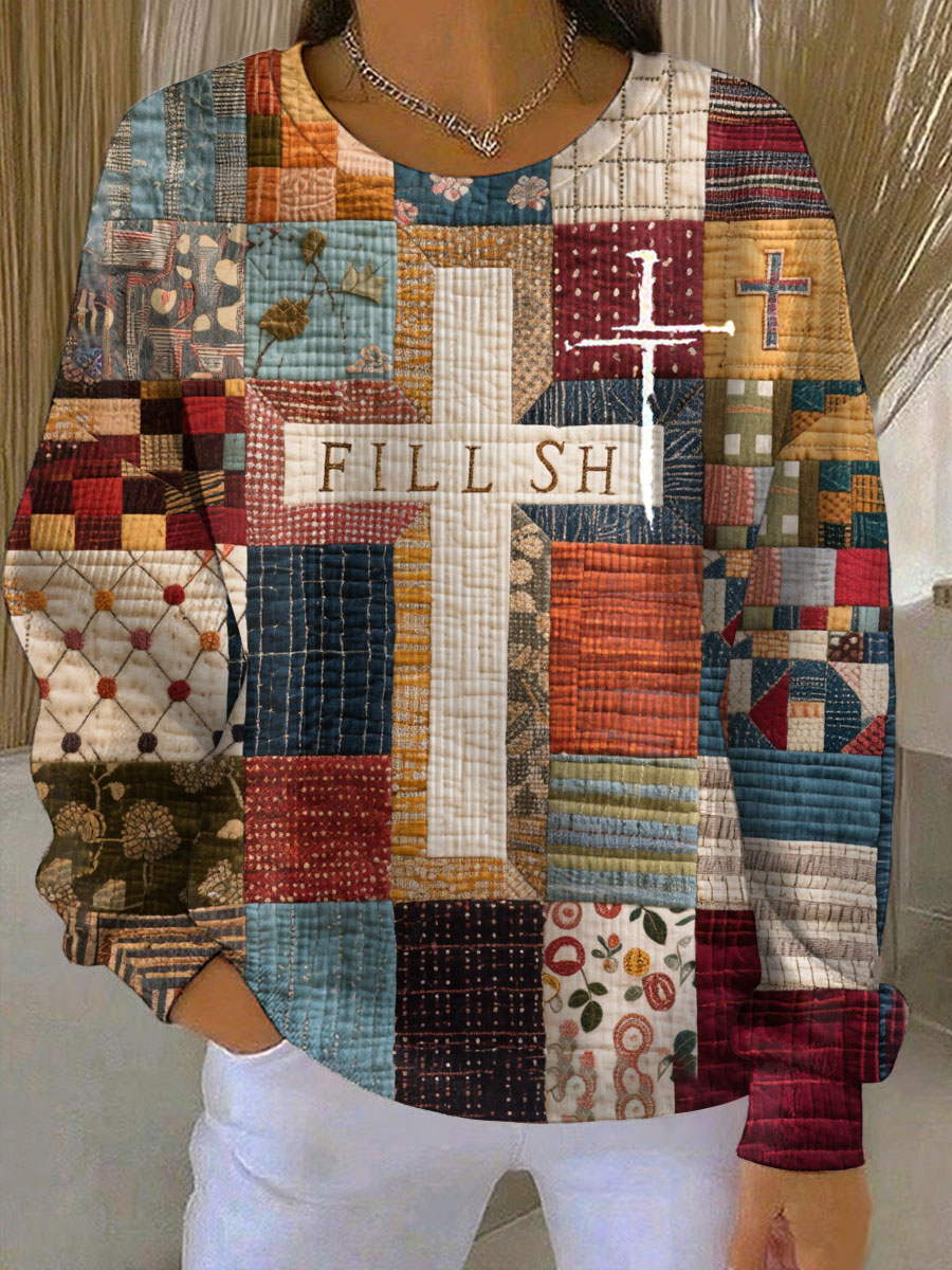 Women's Retro Casual Faith Cross Art Print Hoodie