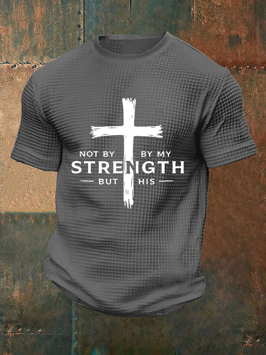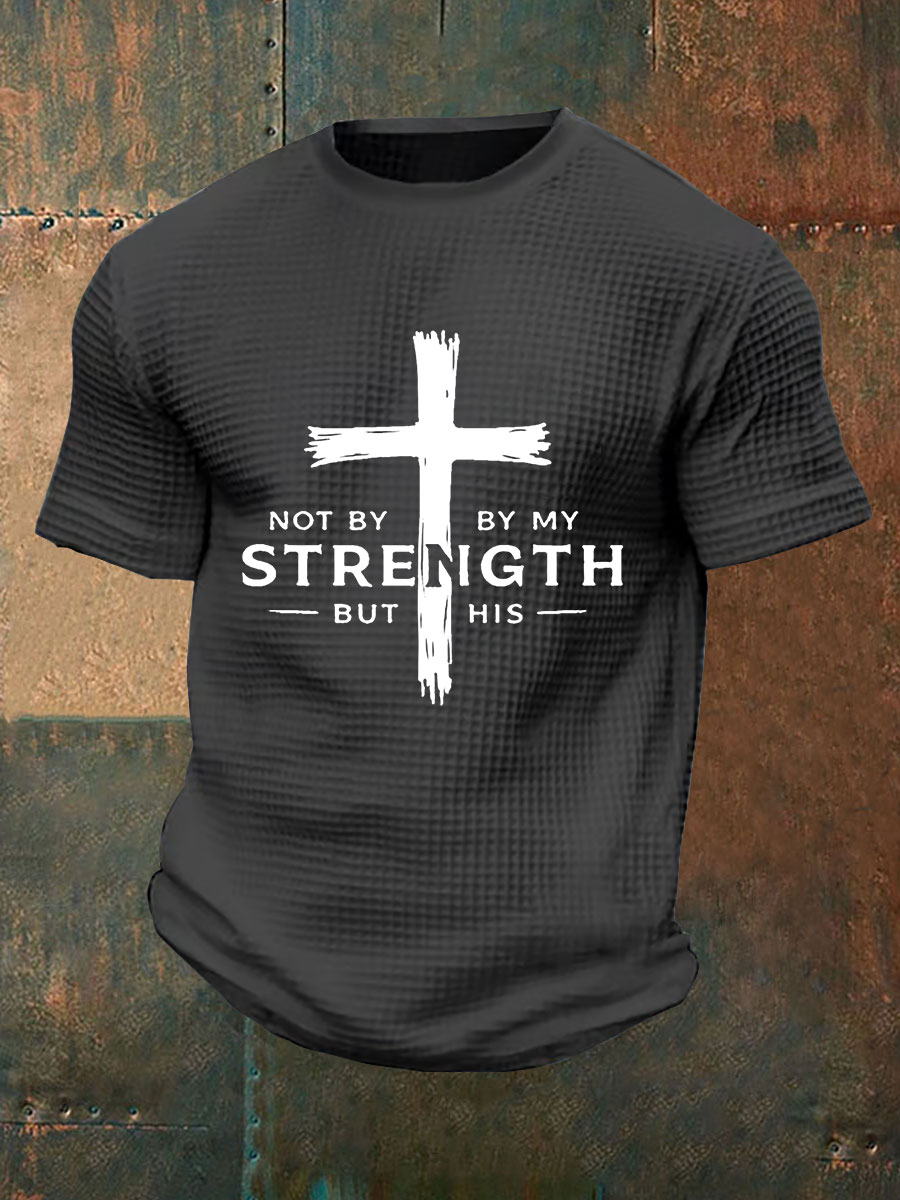 Men's Not My Strength But His Waffle Print T-Shirt