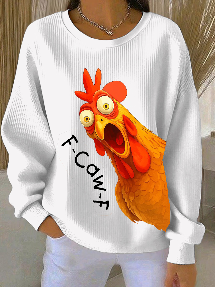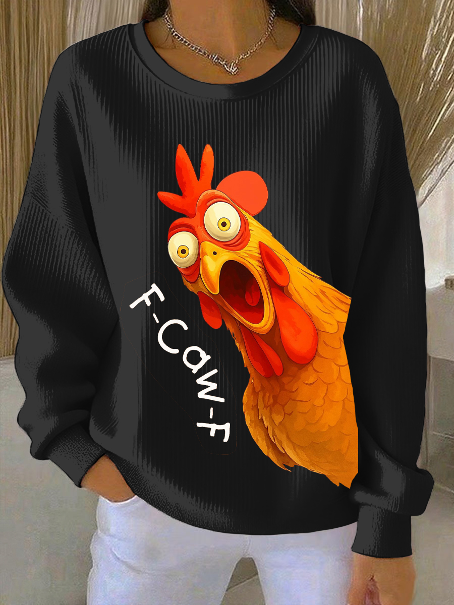Women's Casual Thanksgiving Ribbed Round-Neck Sweatshirt