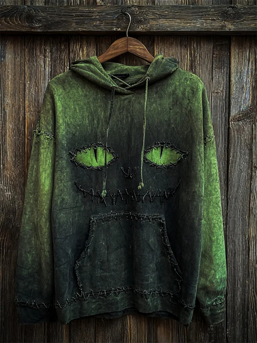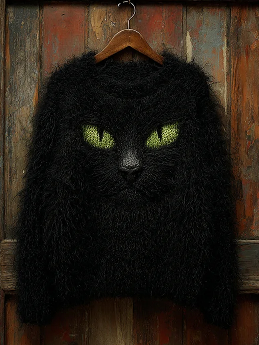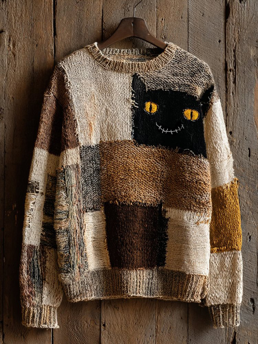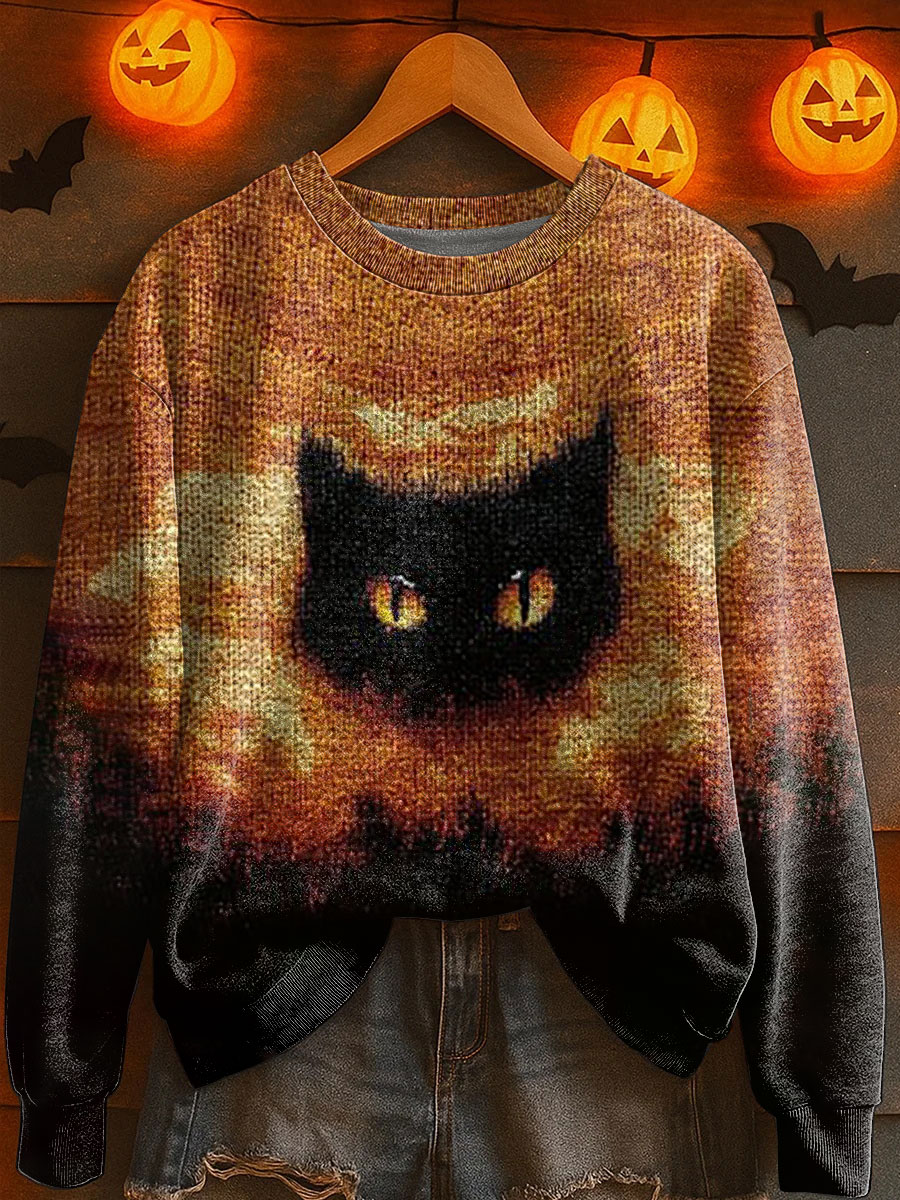Men's Vintage Hallowee Black Cat Printed Long Sleeve Sweatshirt / Hoodie