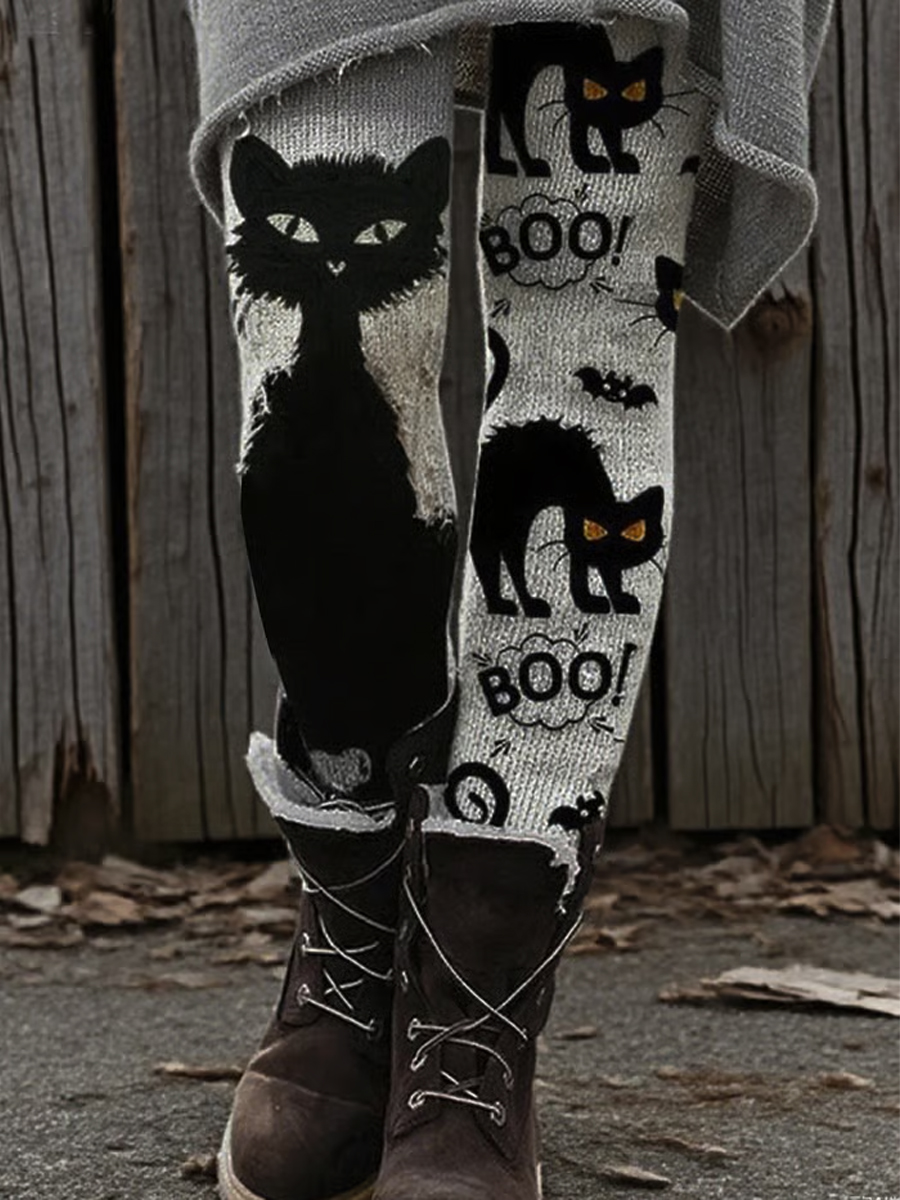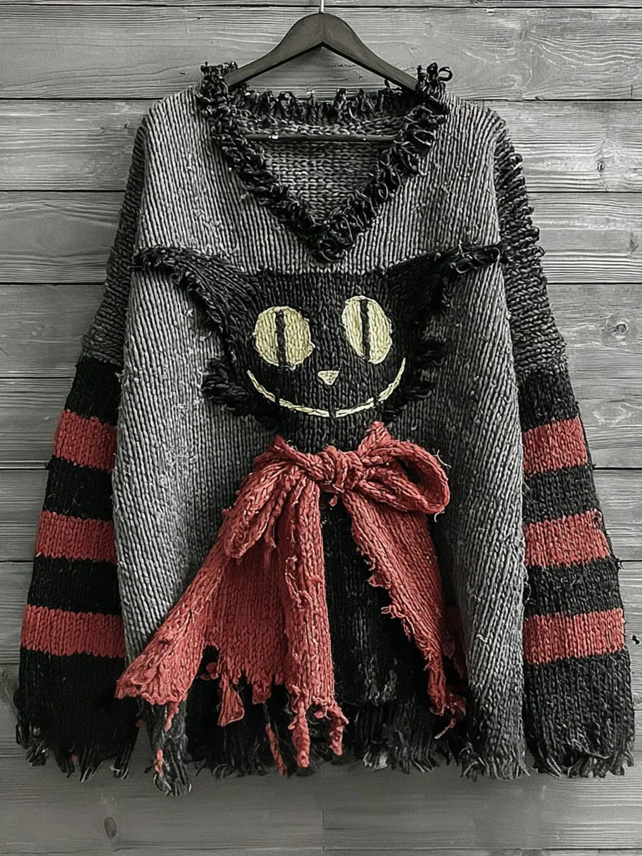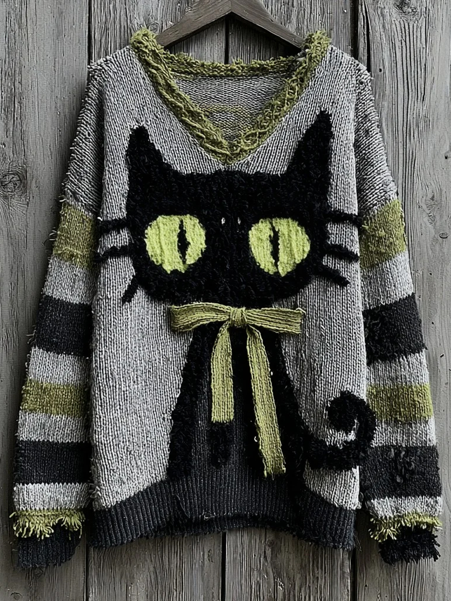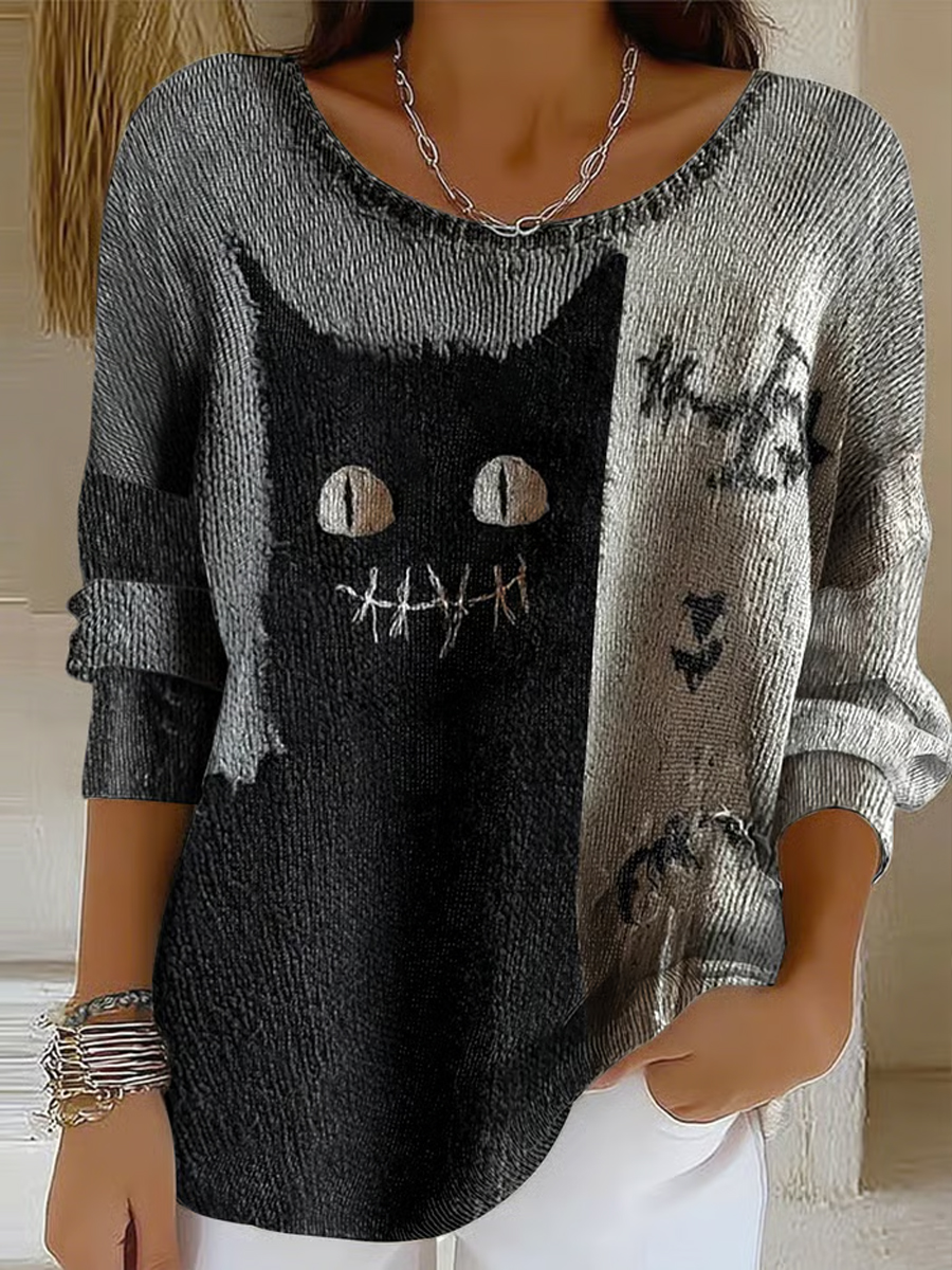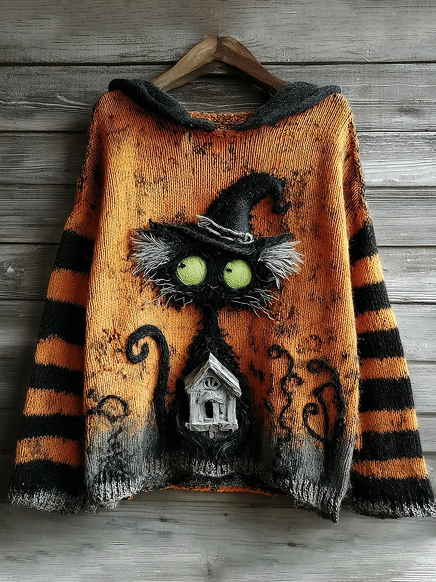 Men's Vintage Hallowee Black Cat Printed Long Sleeve Sweatshirt / Hoodie