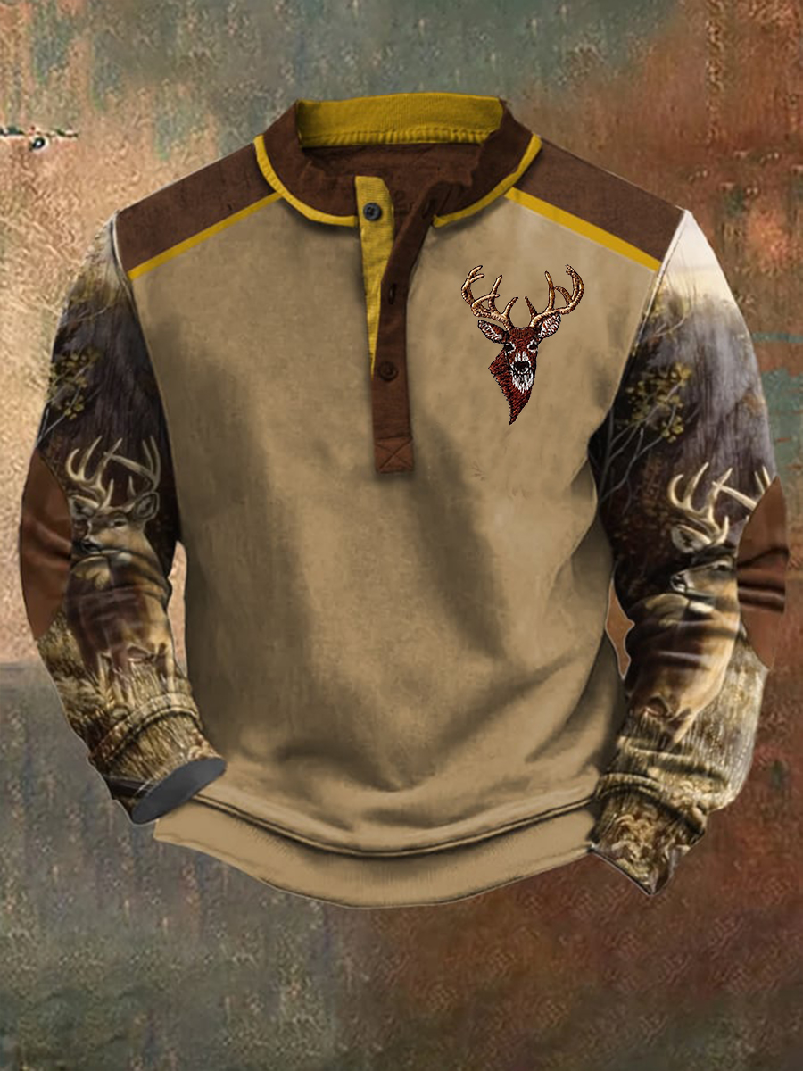 Men's Western Hunting Enthusiast Jacquard Ribbed Stand Collar Button-Down Sweatshirt