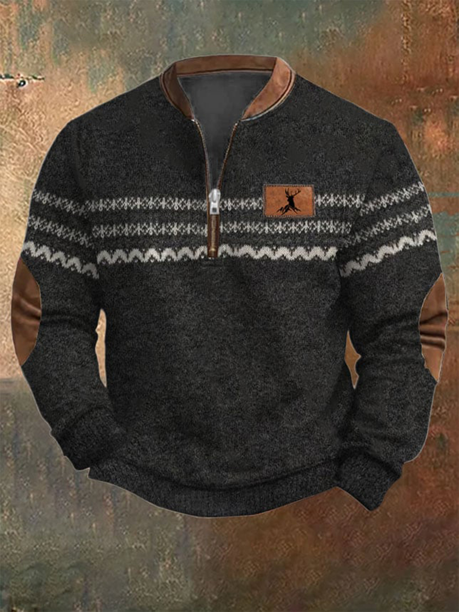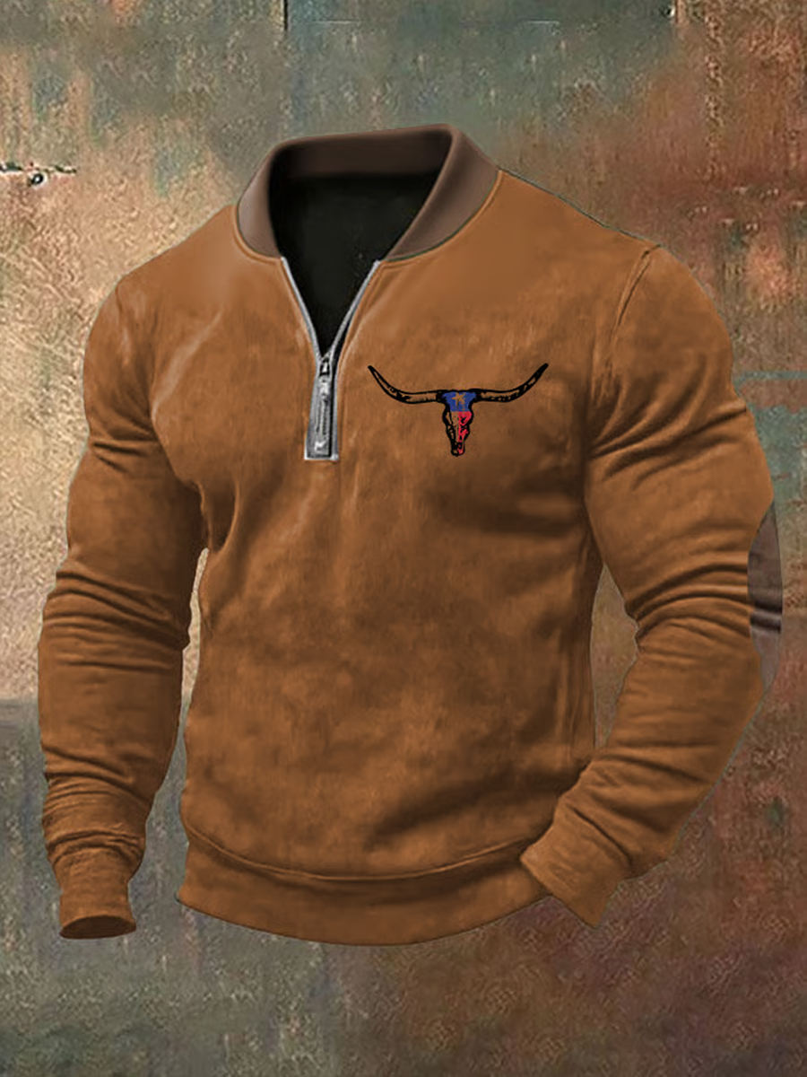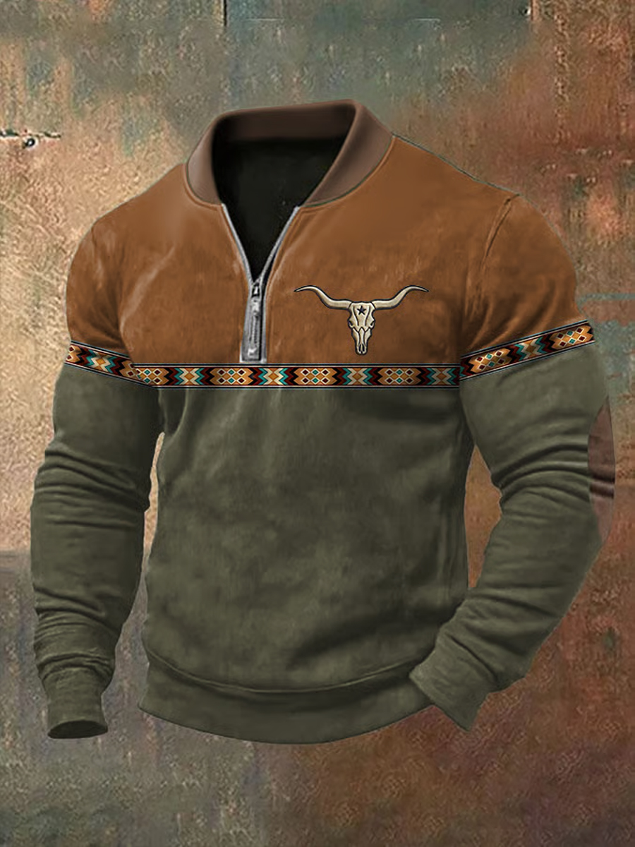 Men's Retro Western Aztec Cowboy Print Casual Zipper Sweatshirt