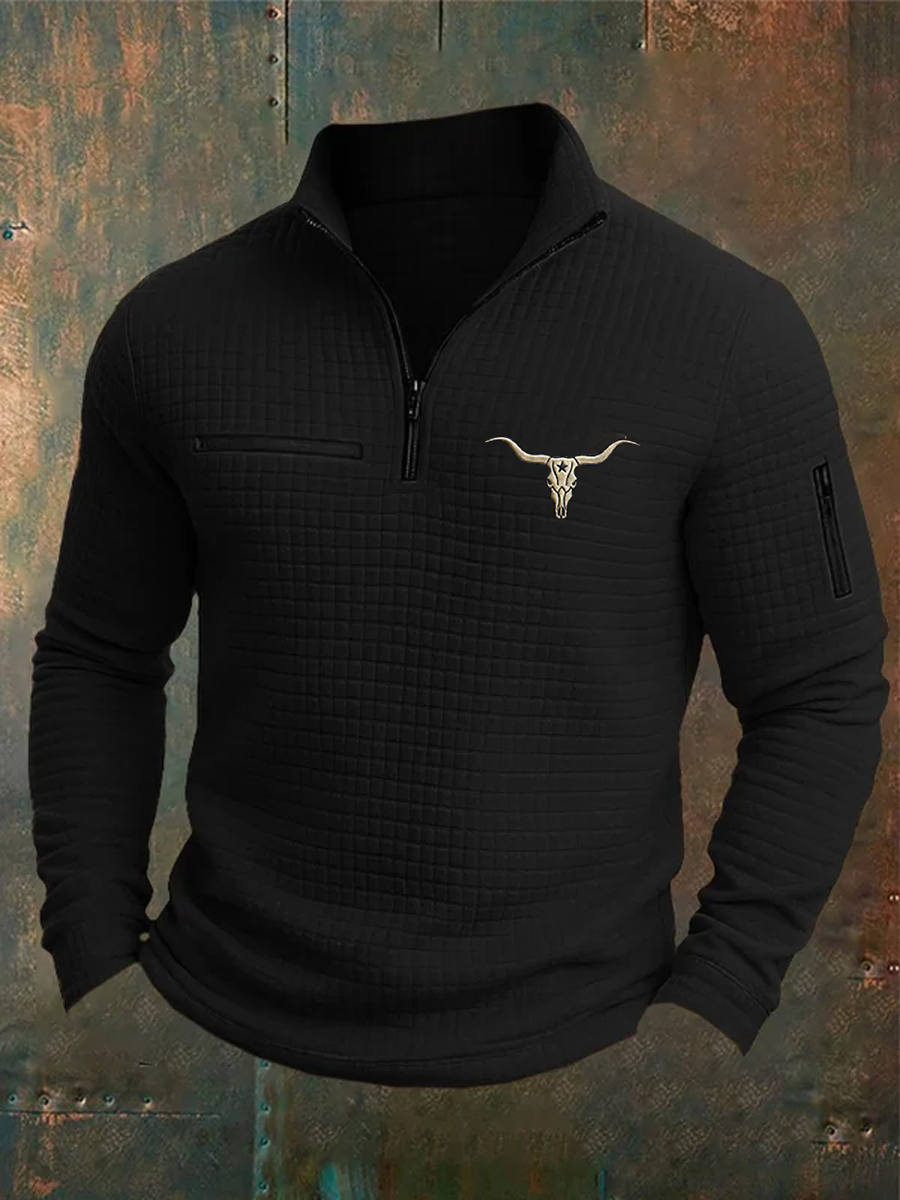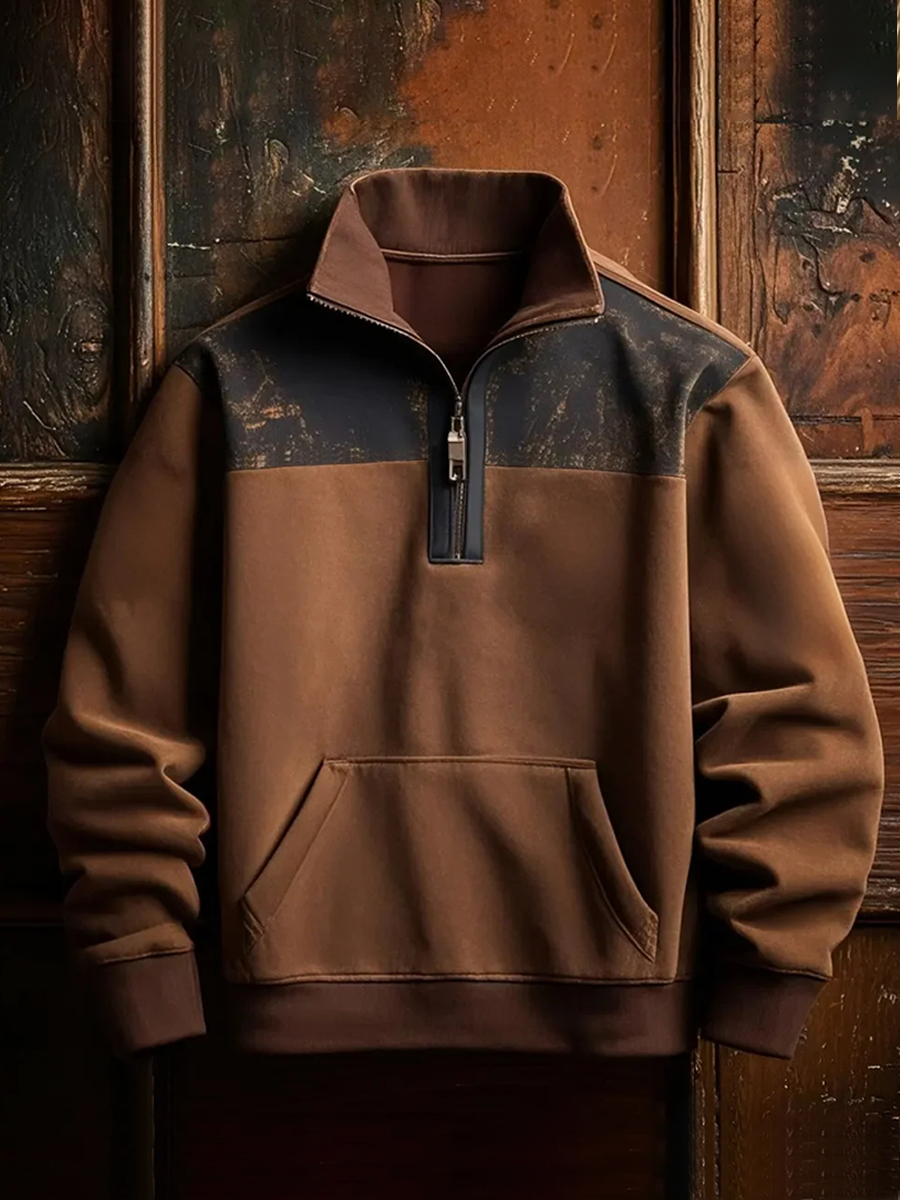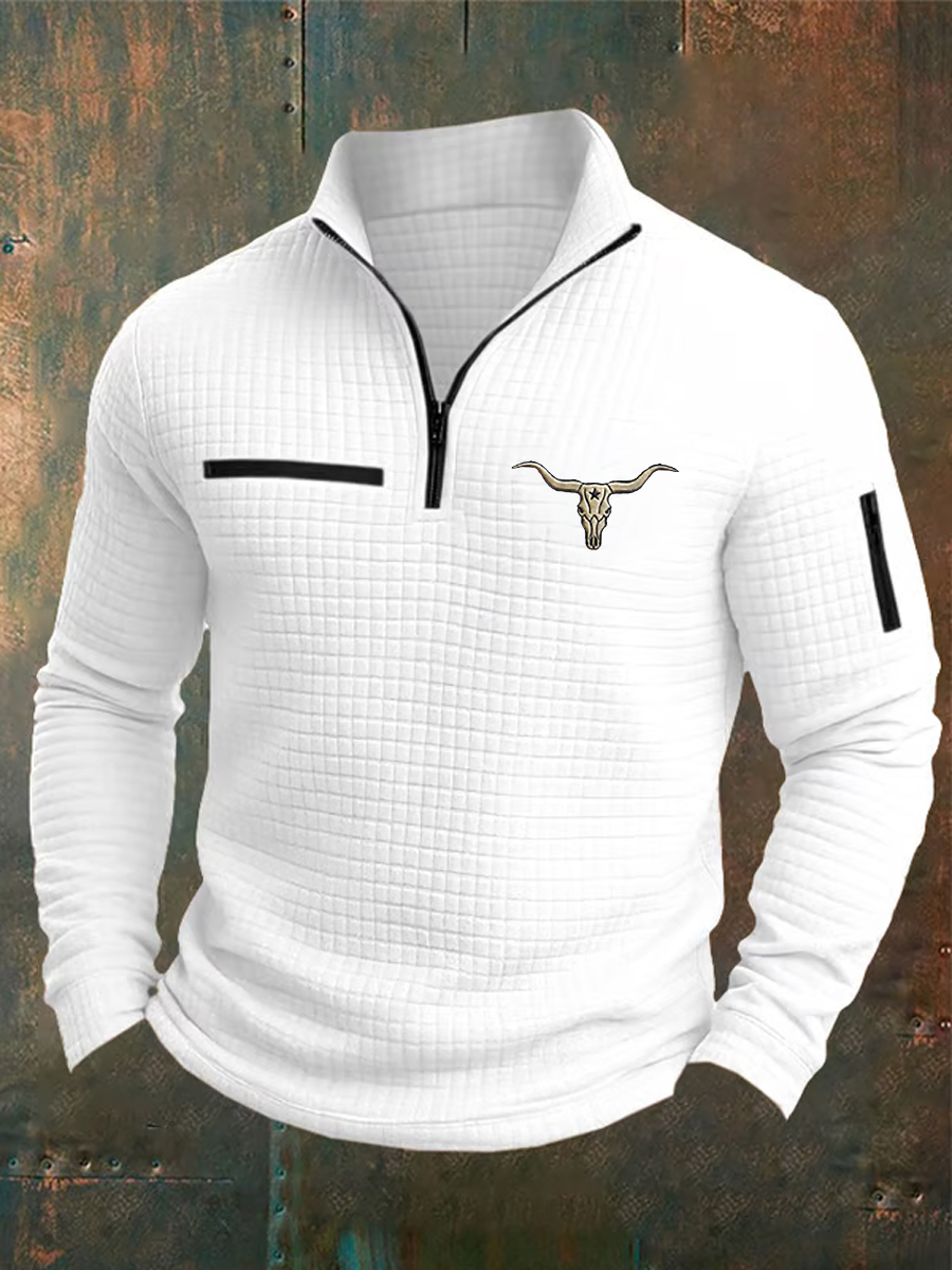 Men's Retro Western Aztec Cowboy Print Casual Zipper Sweatshirt