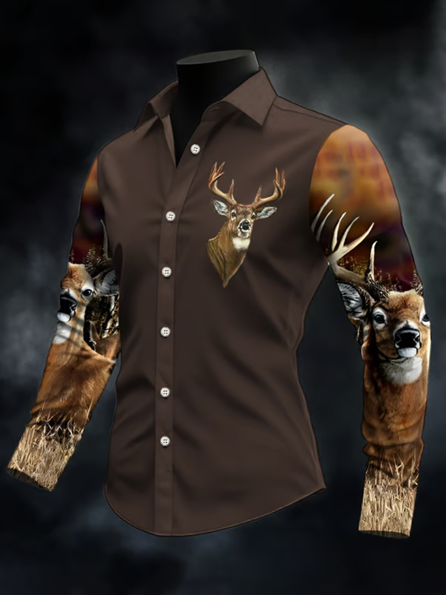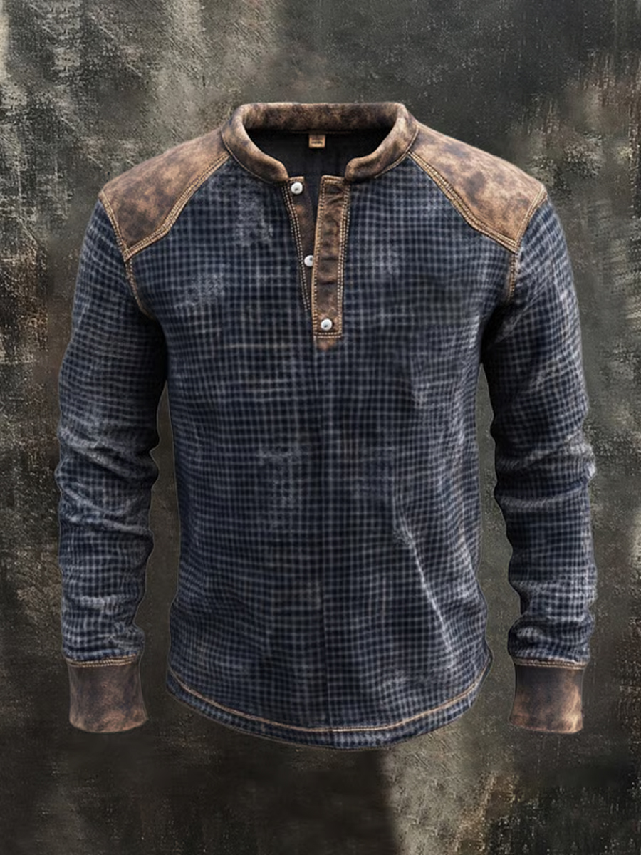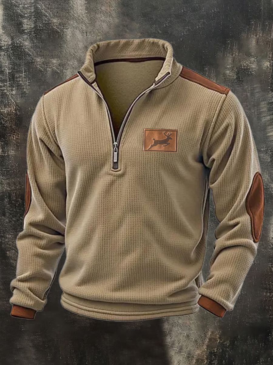 Men's Western Hunter Jacquard Herringbone Crew Neck Button-Down Sweatshirt