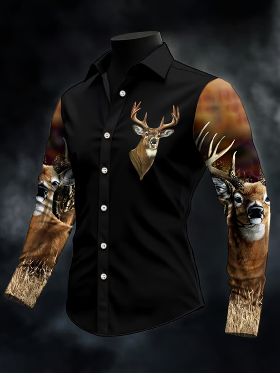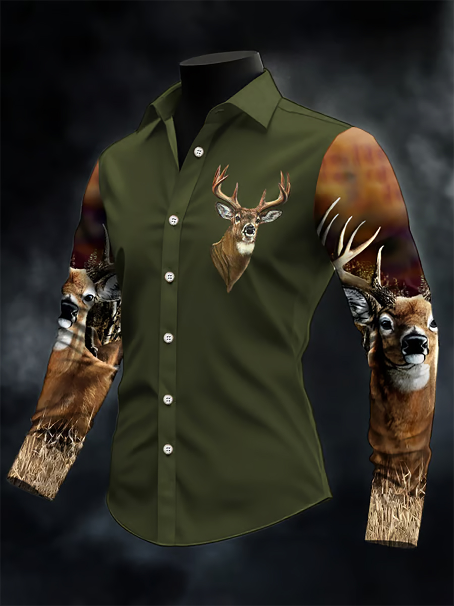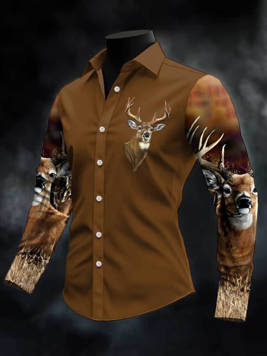 Men's Western Hunter Jacquard Herringbone Crew Neck Button-Down Sweatshirt