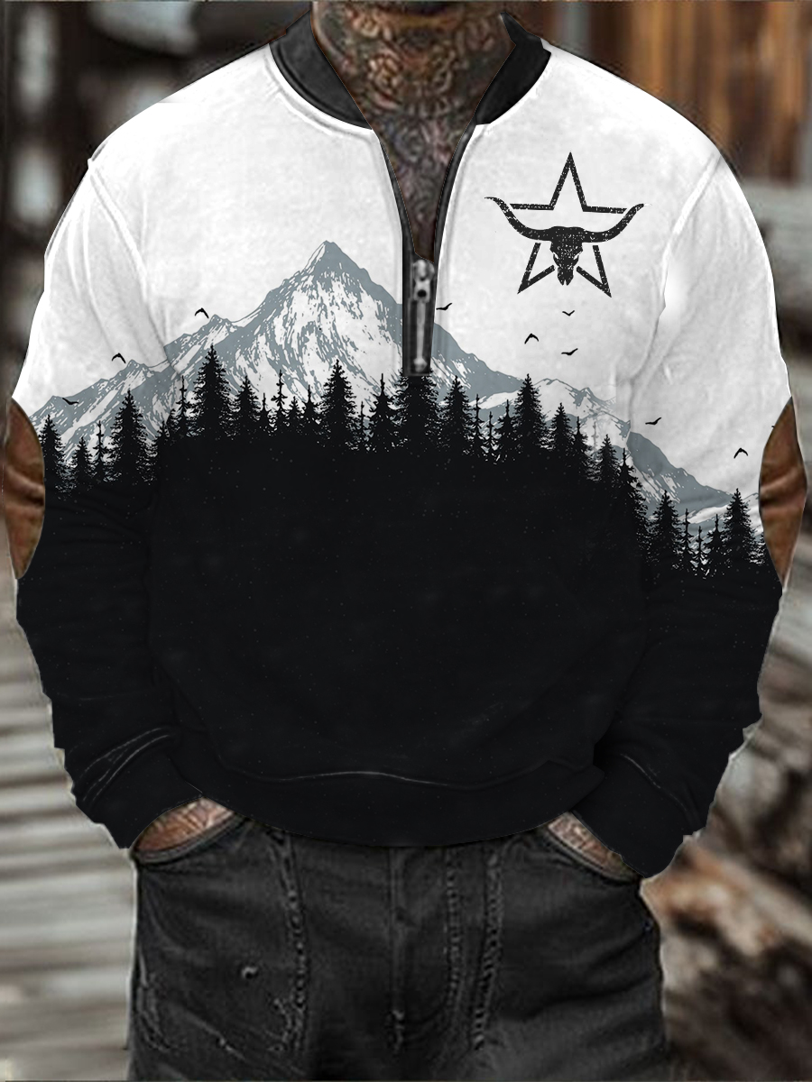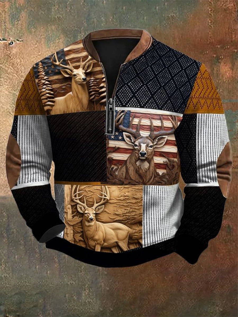 Men's Western Hunting Enthusiast Knitted 3D Jacquard Zipper Sweatshirt