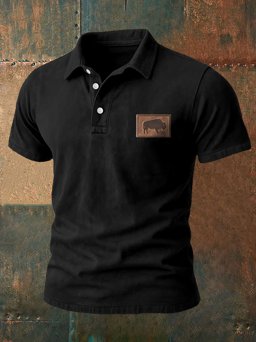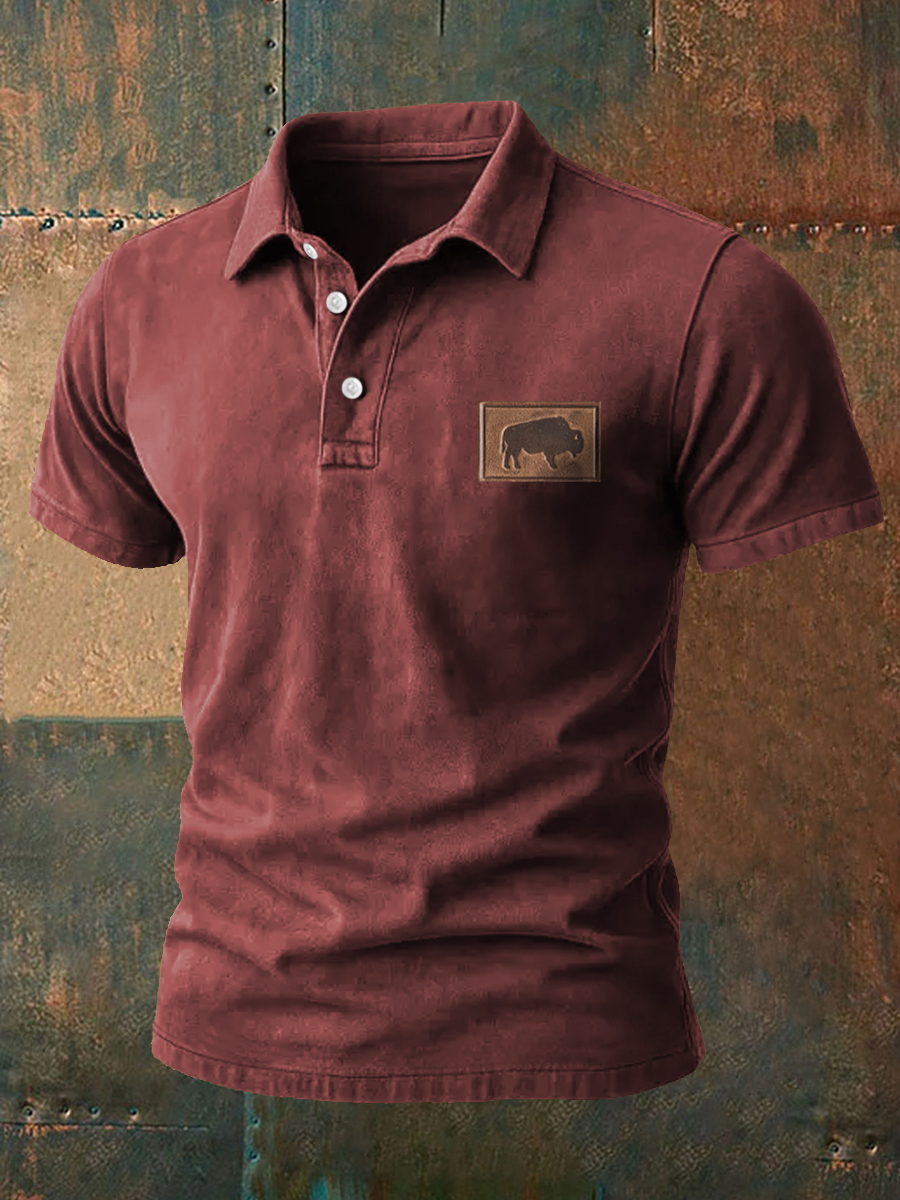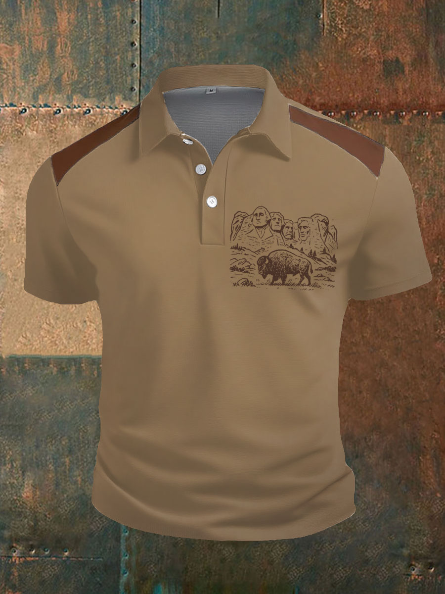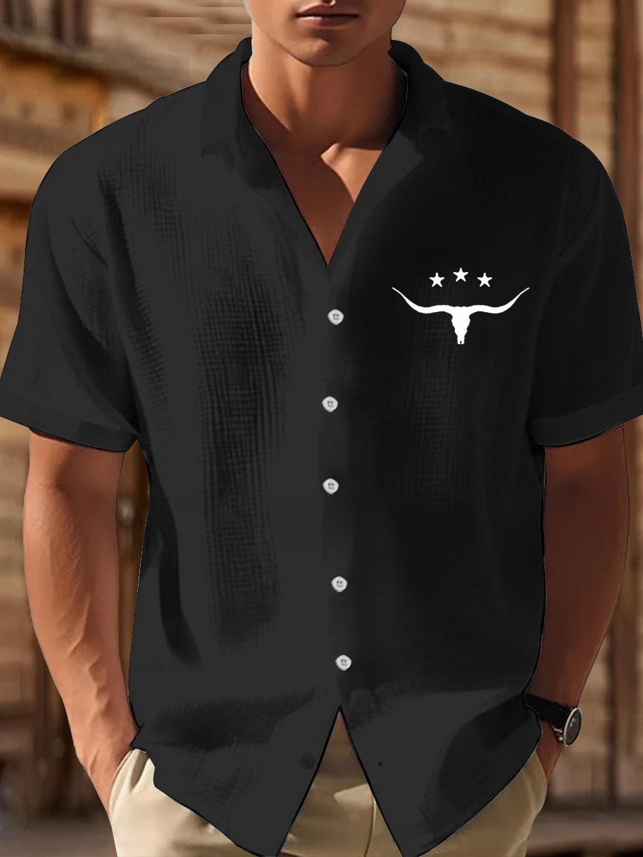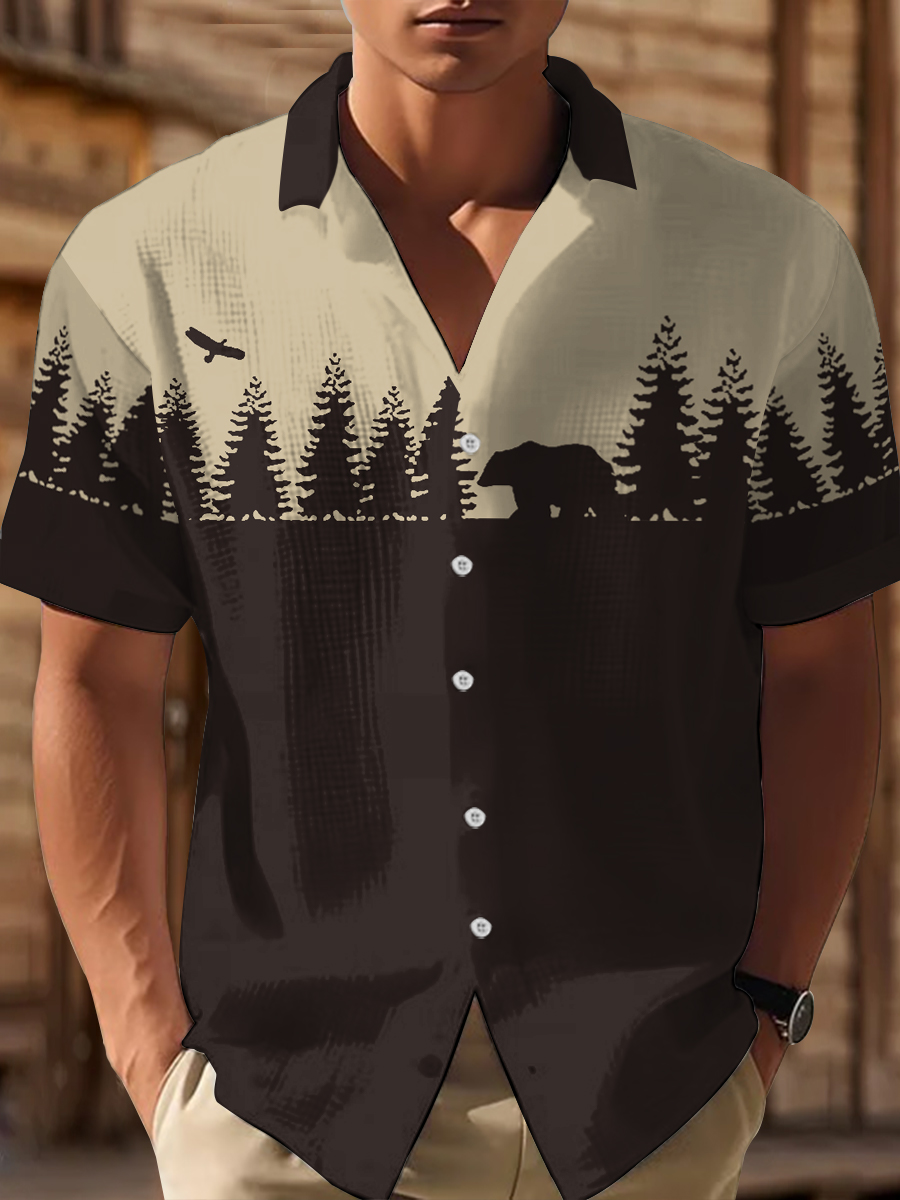 Men's Western Bear Silhouette Print Casual Short Sleeve Waffle Shirt