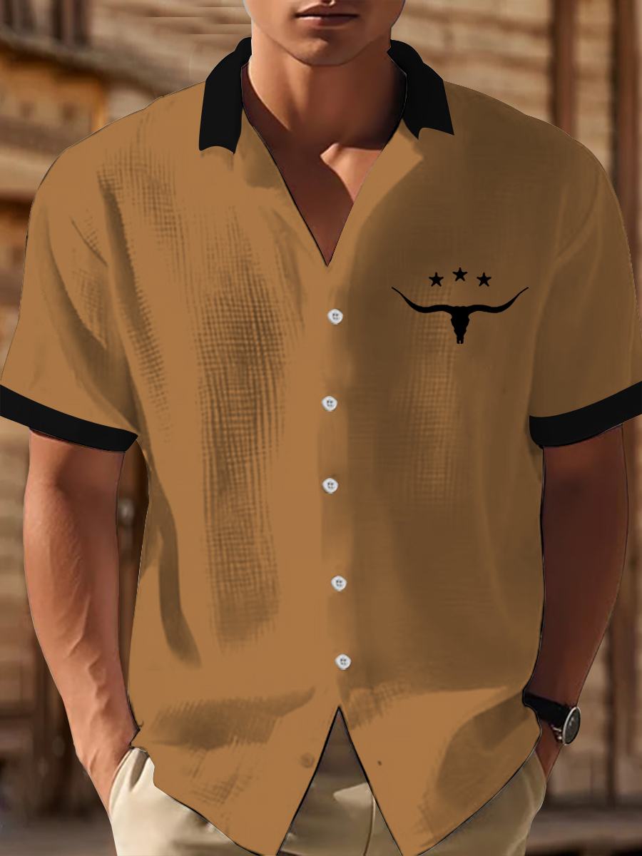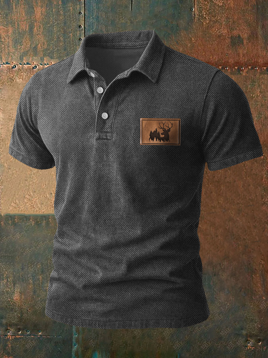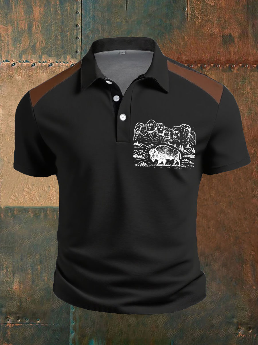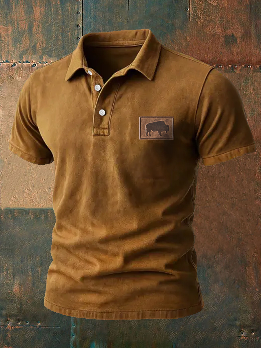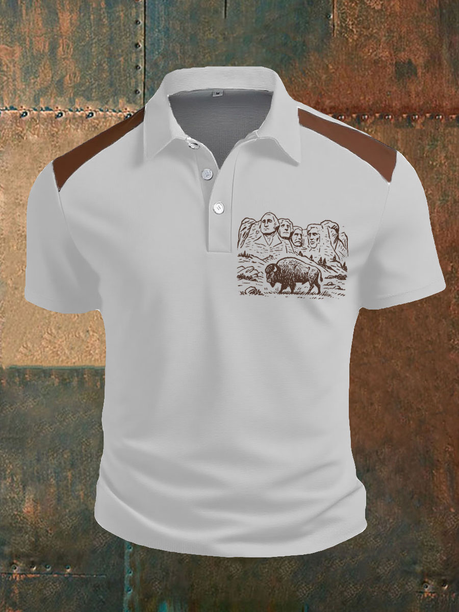 Men's Western Bear Silhouette Print Casual Short Sleeve Waffle Shirt