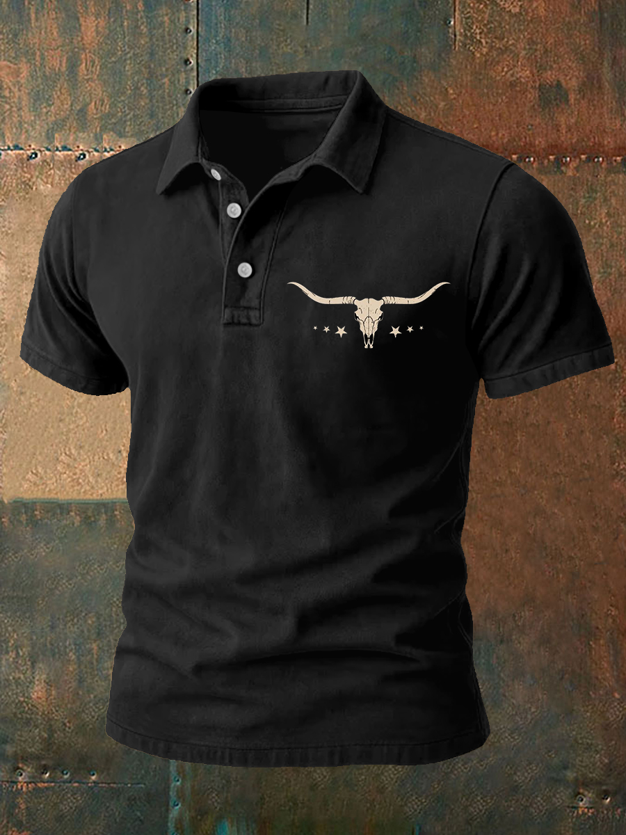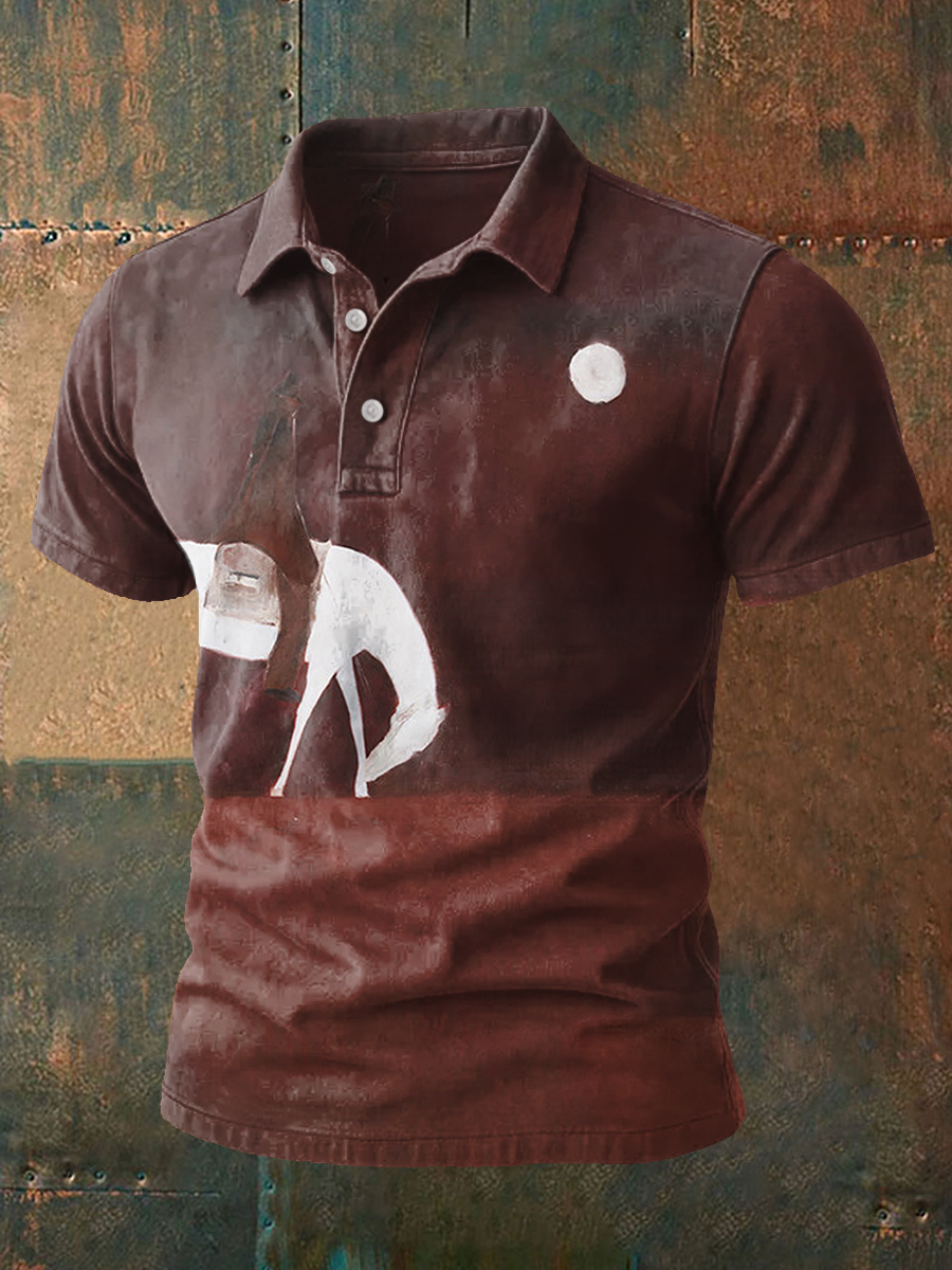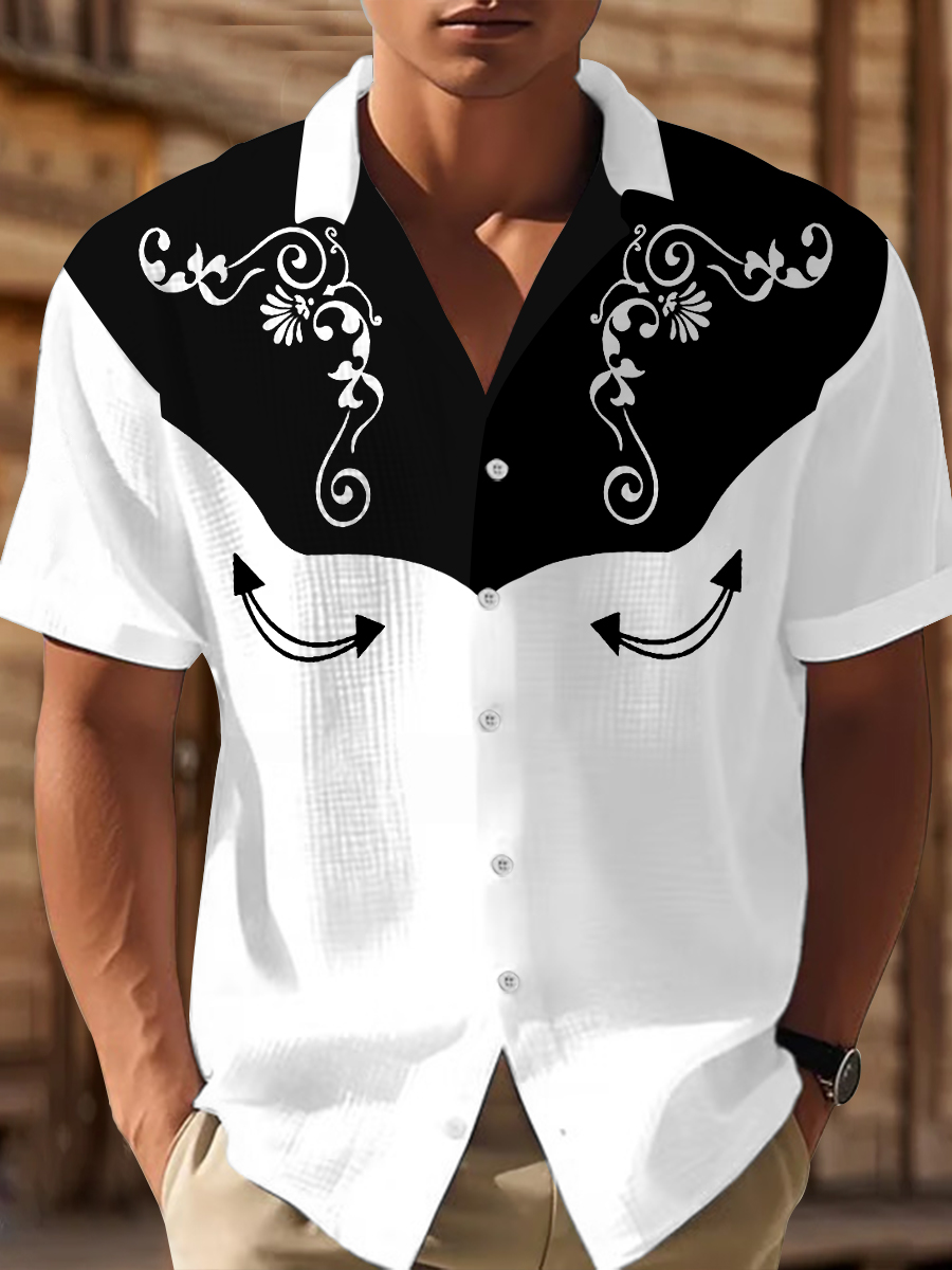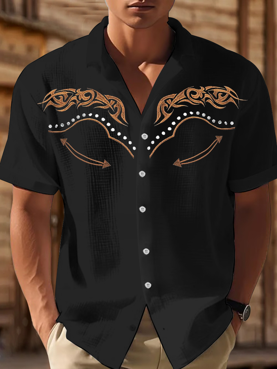 Men's Western Bear Silhouette Print Casual Short Sleeve Waffle Shirt