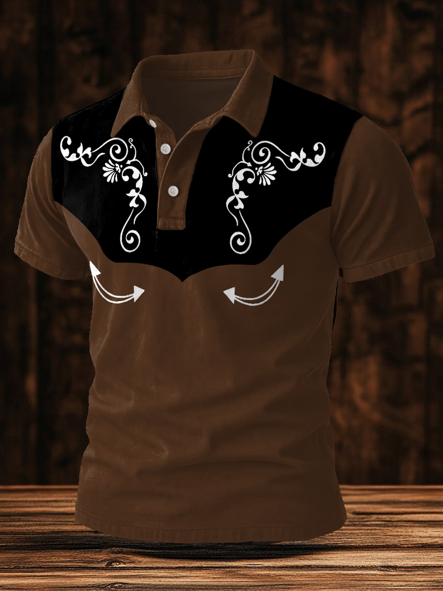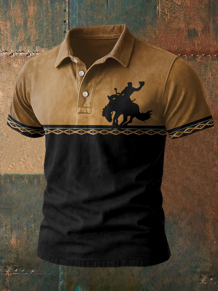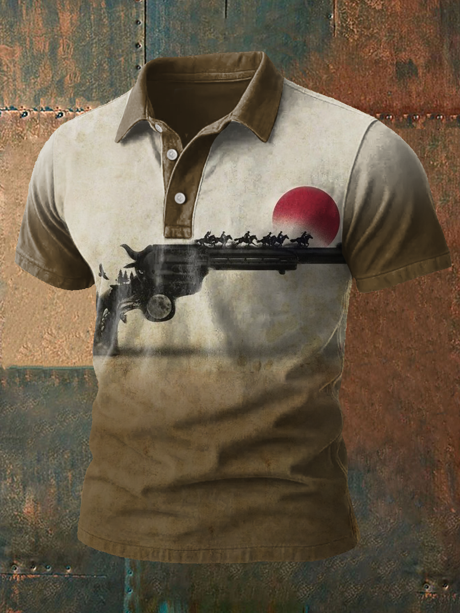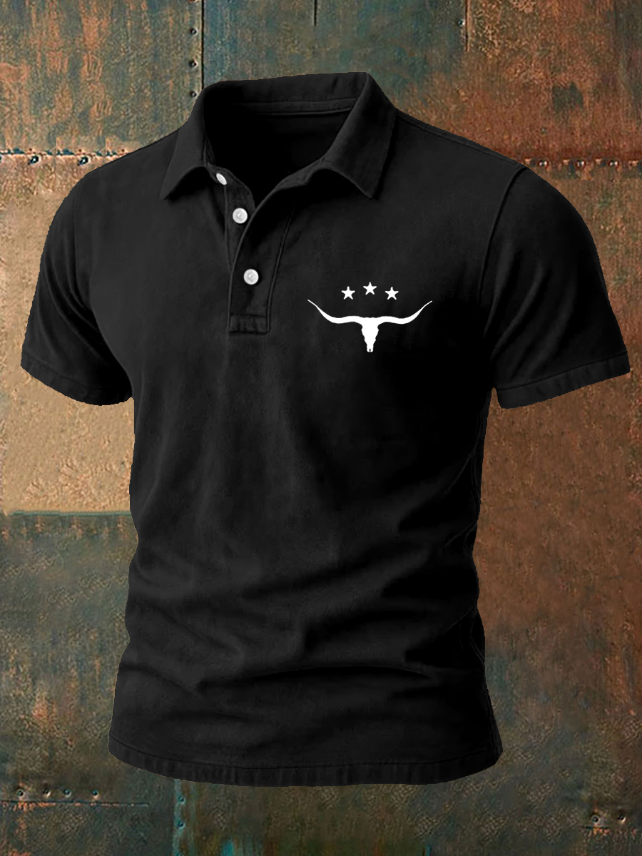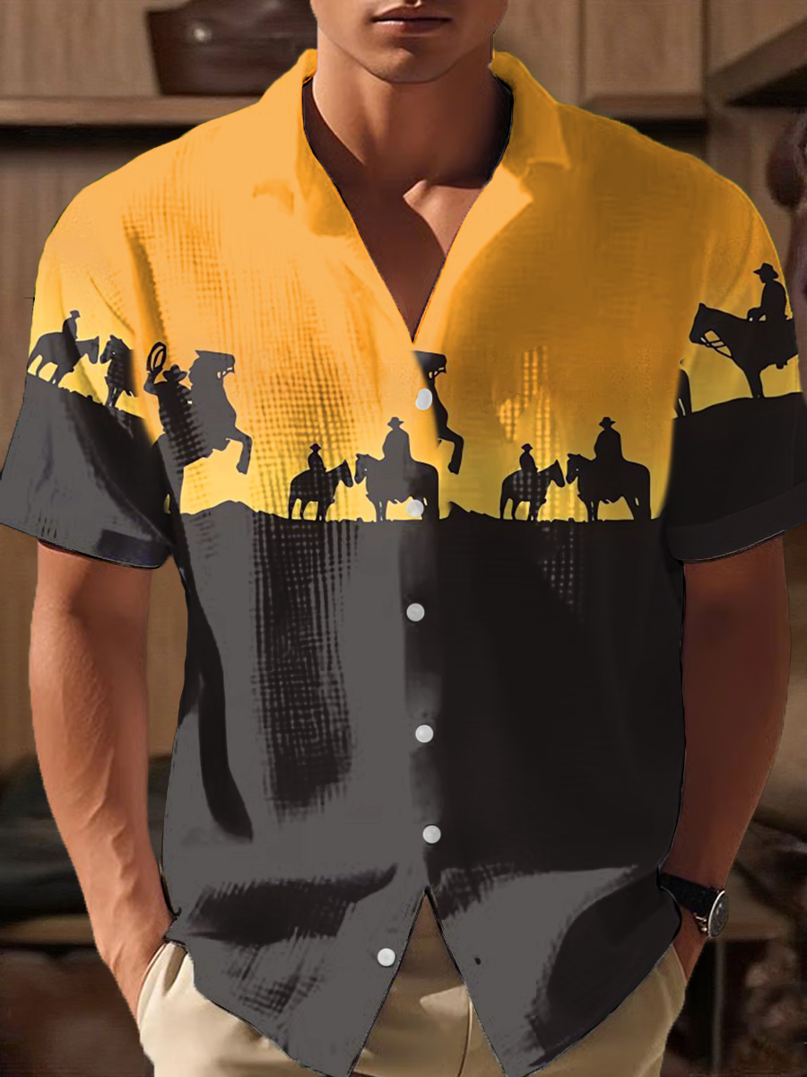 Men's Western Bear Silhouette Print Casual Short Sleeve Waffle Shirt