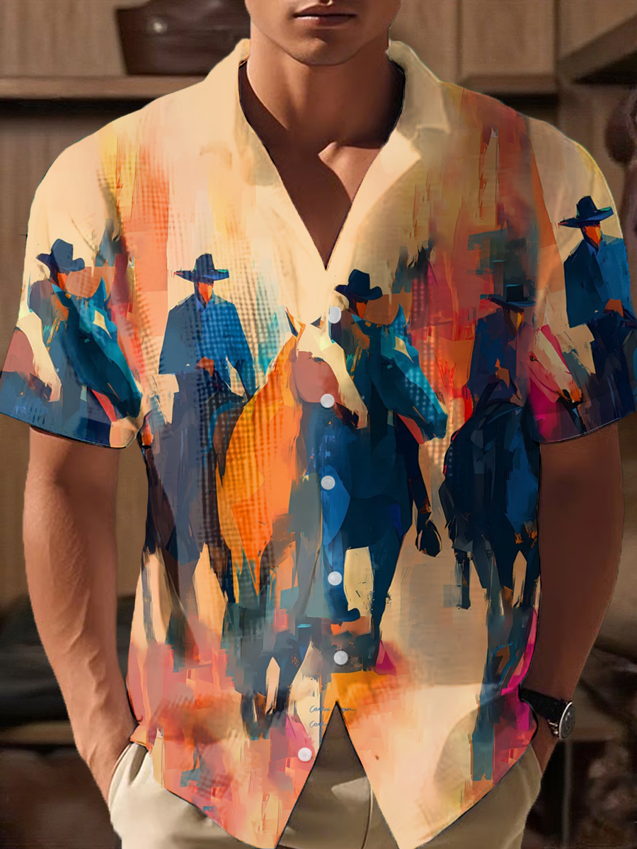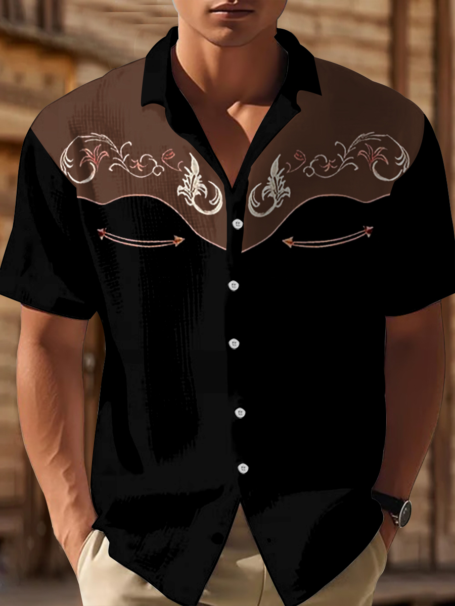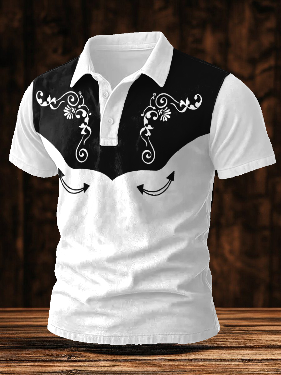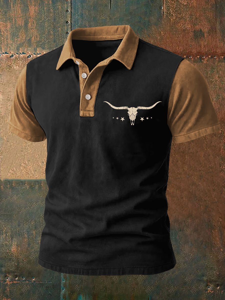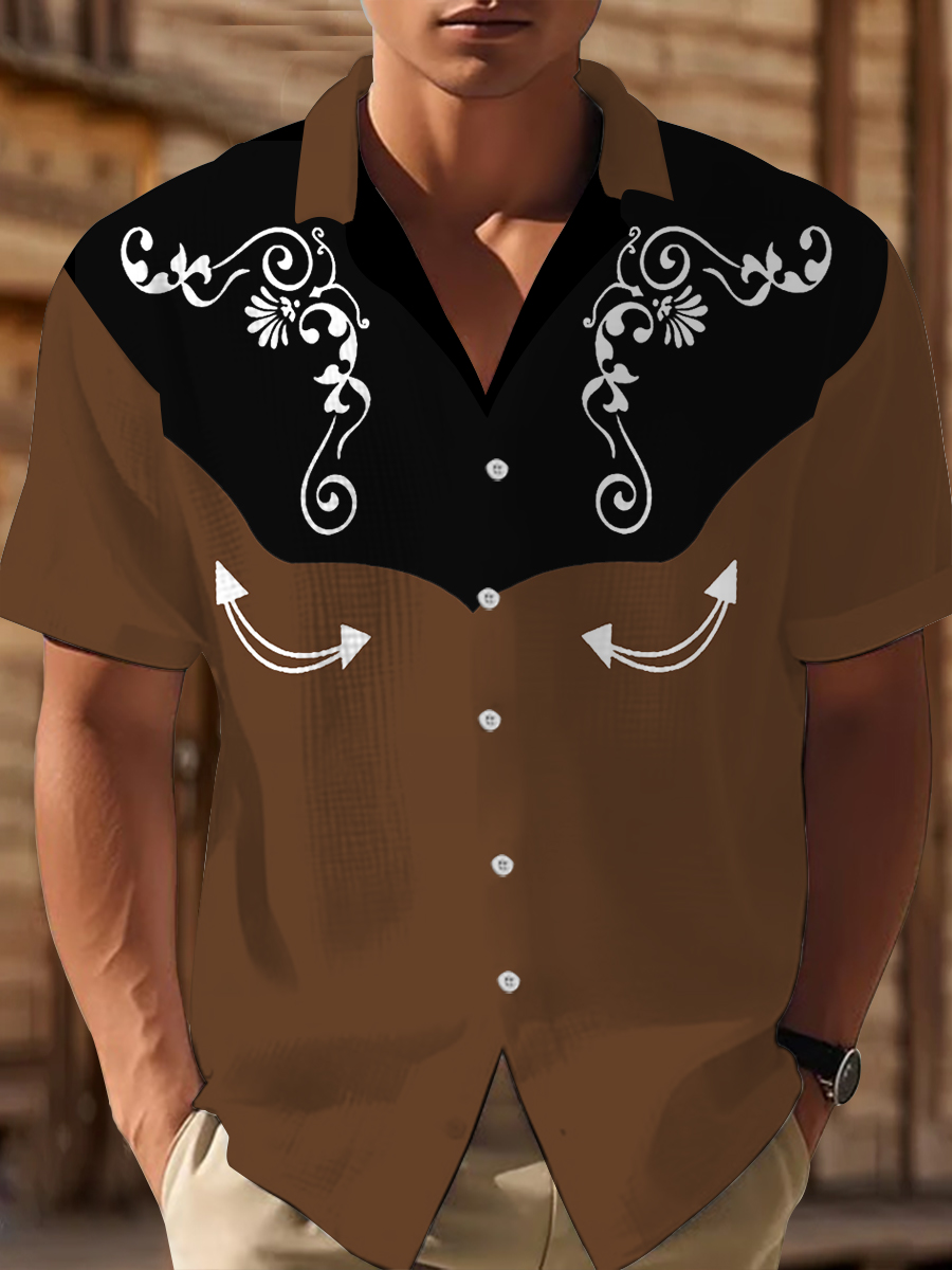 Men's Western Bear Silhouette Print Casual Short Sleeve Waffle Shirt