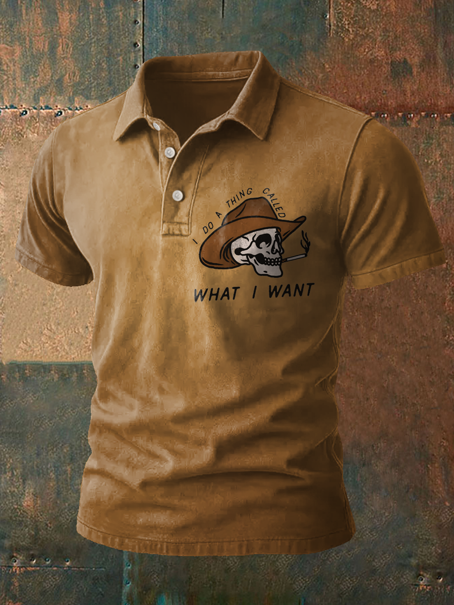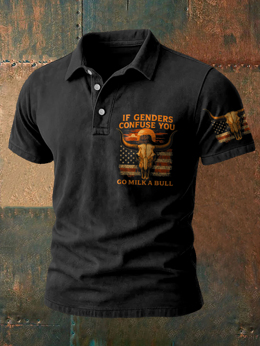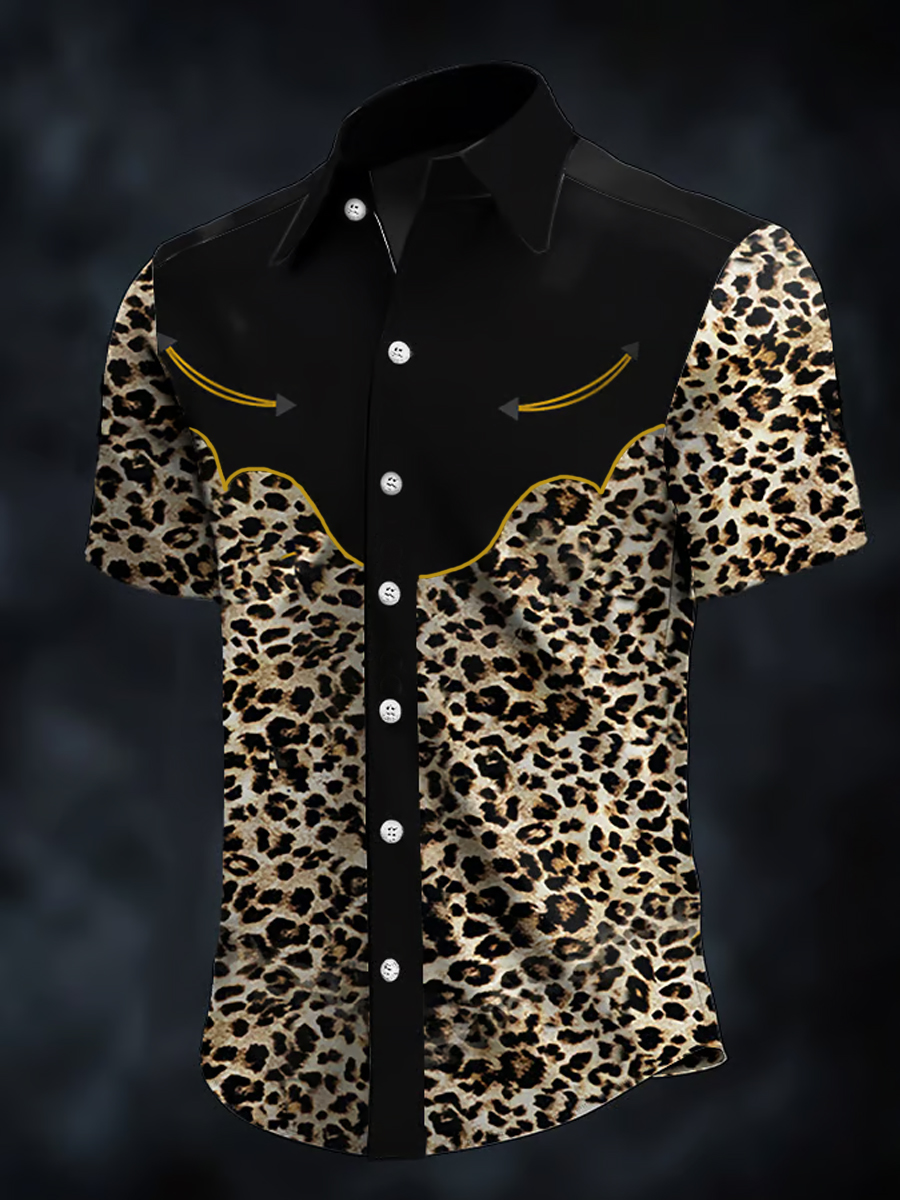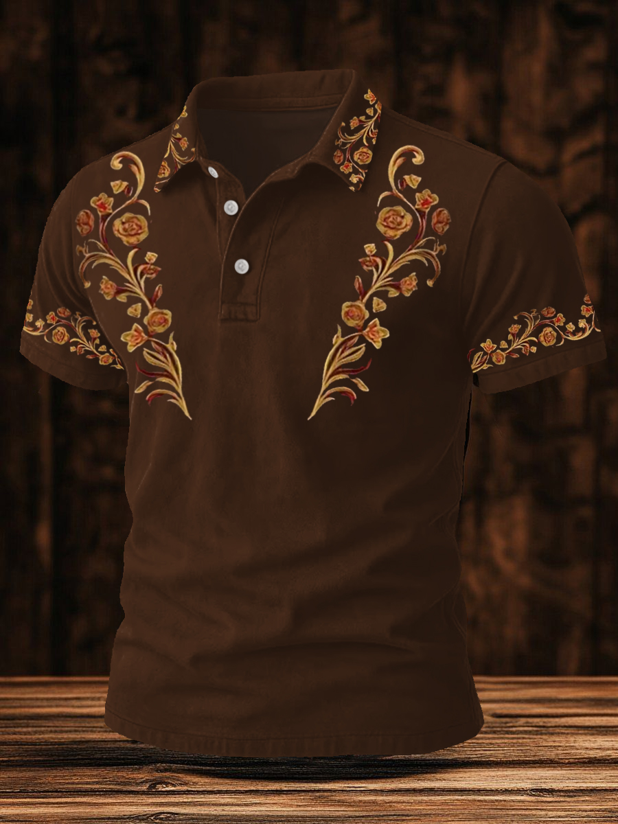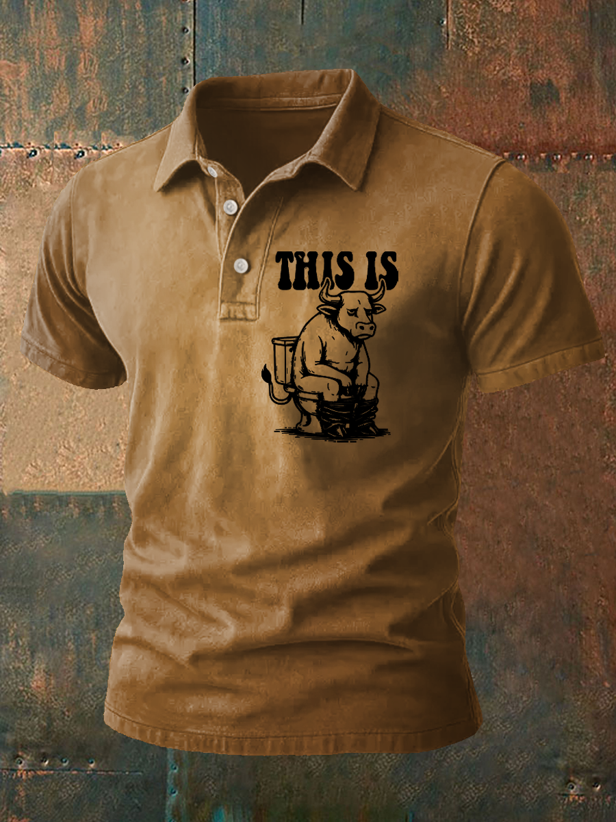Men's Western Bear Silhouette Print Casual Short Sleeve Waffle Shirt