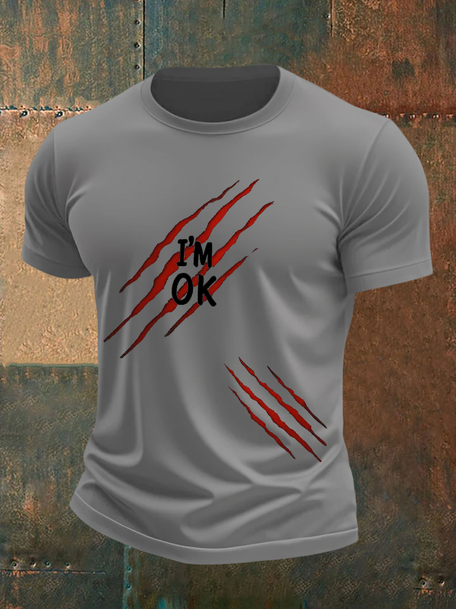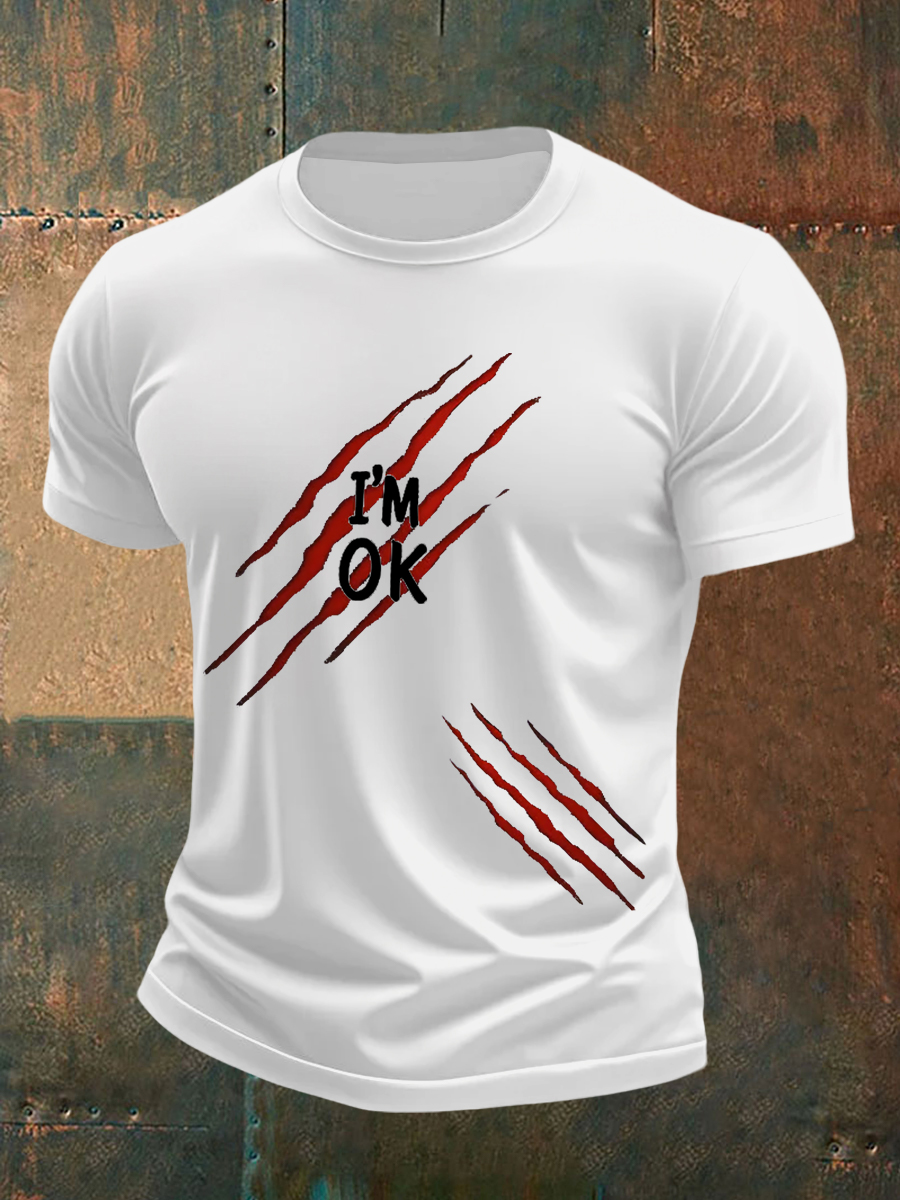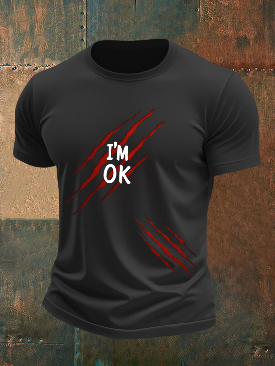 Men's Funny Halloween I'm OK Scratch Print Casual Tee