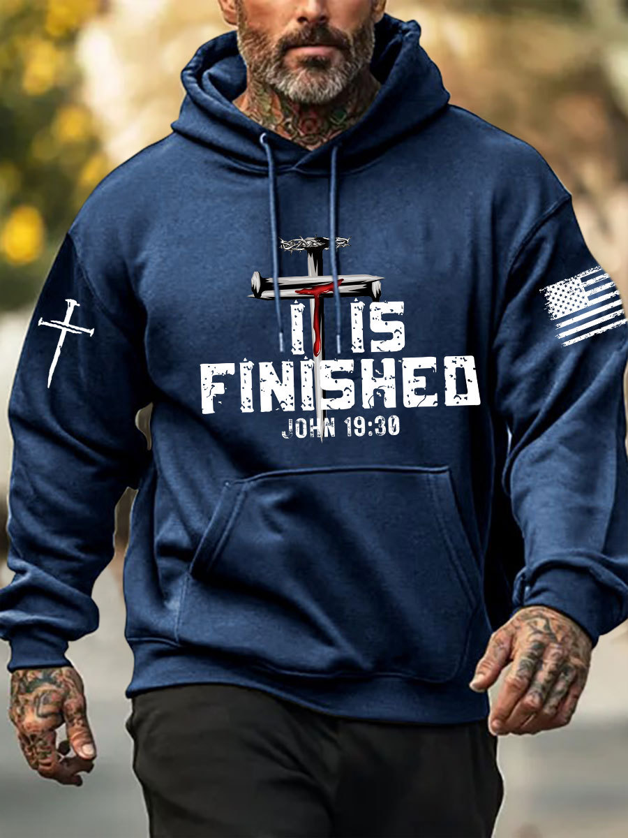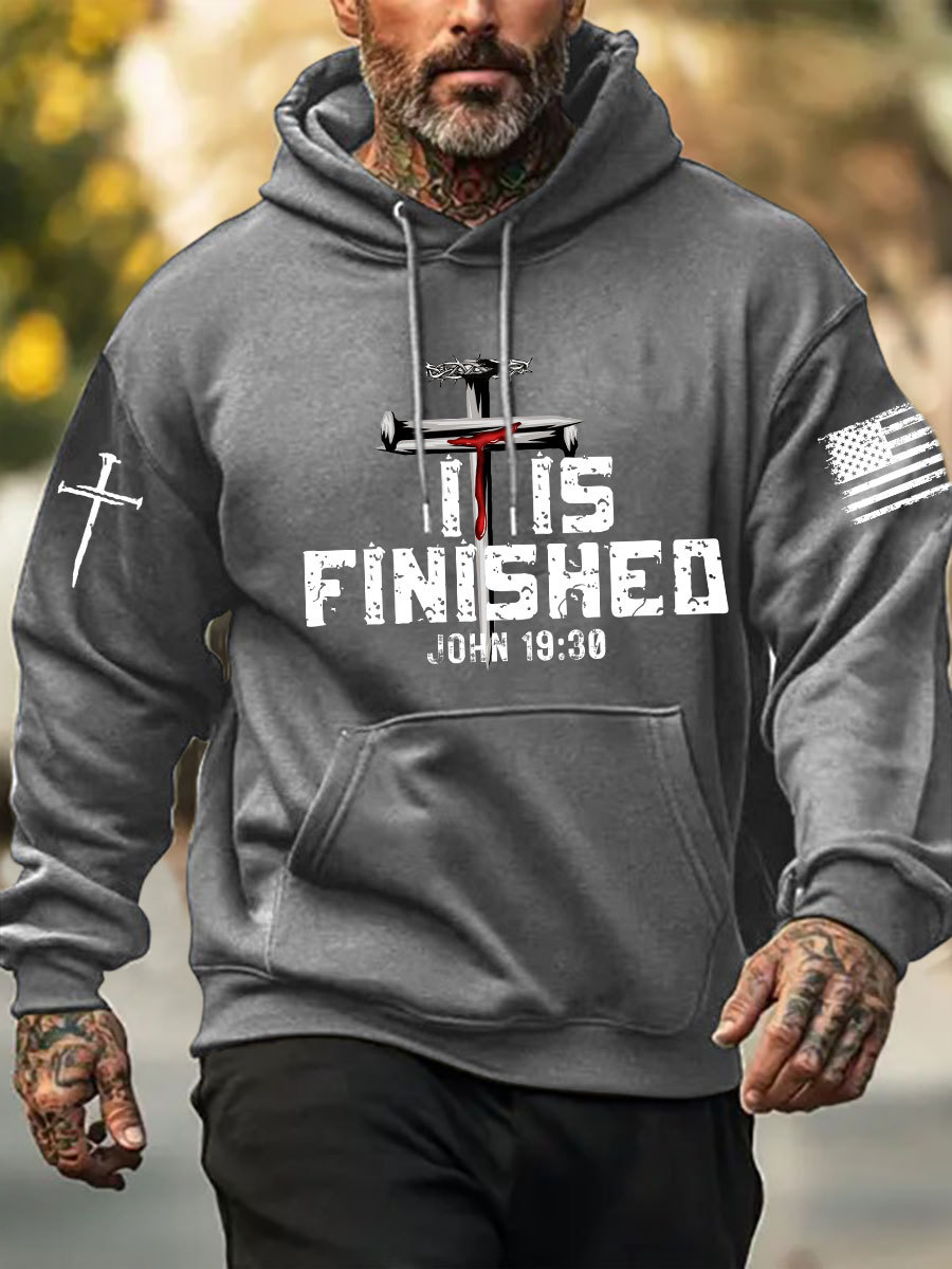 Men's It Is Finished Printed Casual Hoodie
