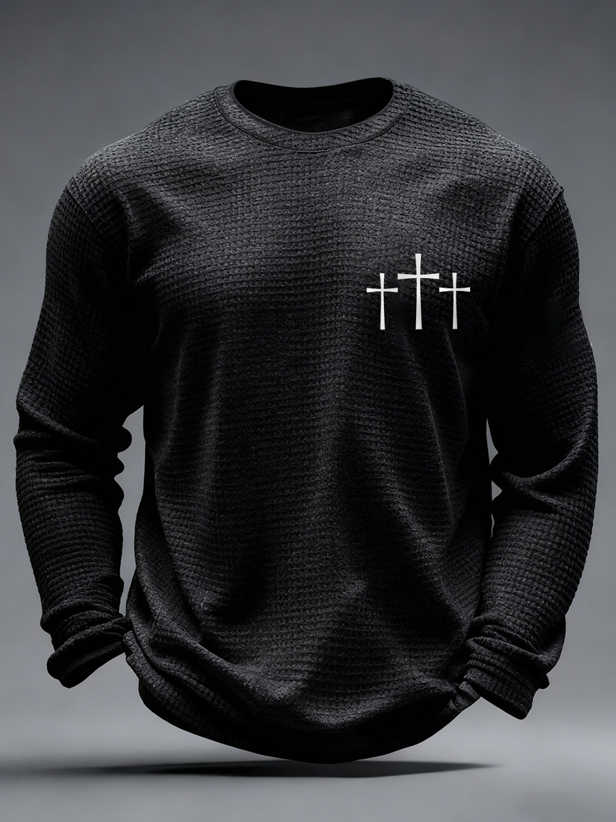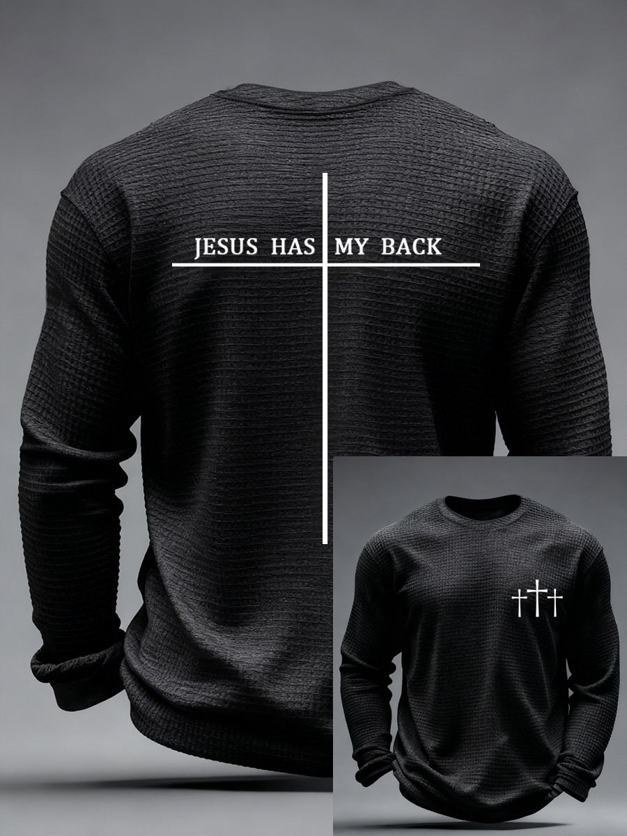 Men's Jesus Has My Back Cross Faith Print Casual Waffle Long Sleeve T-Shirt