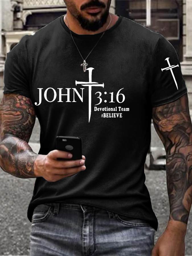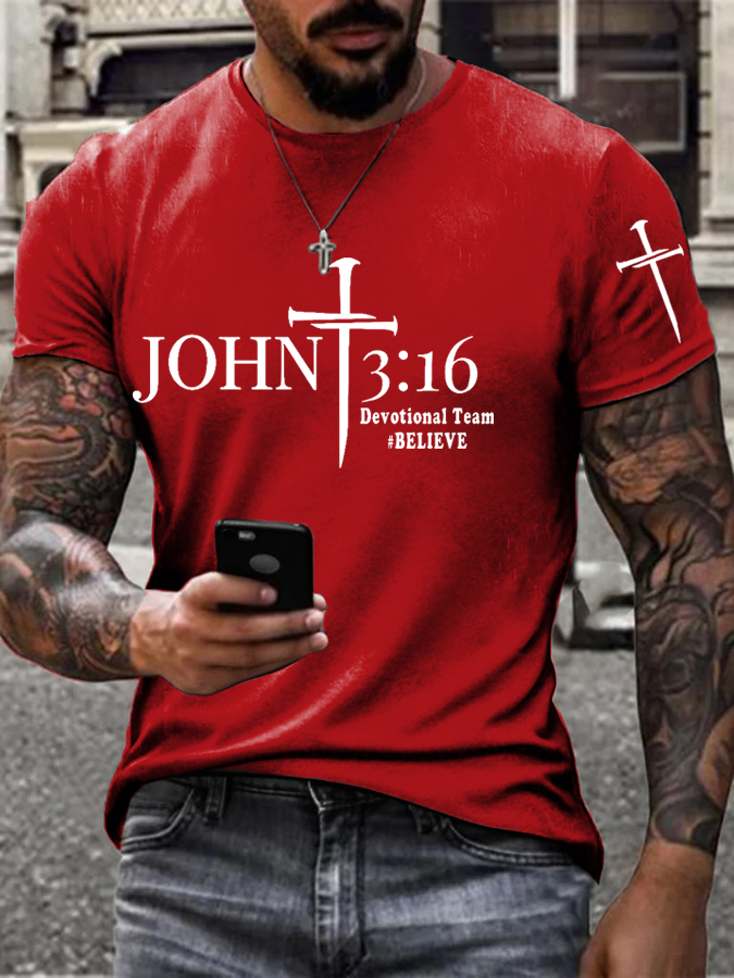 Men's John 3 16 Devotional Team God Christian Printed T-shirt