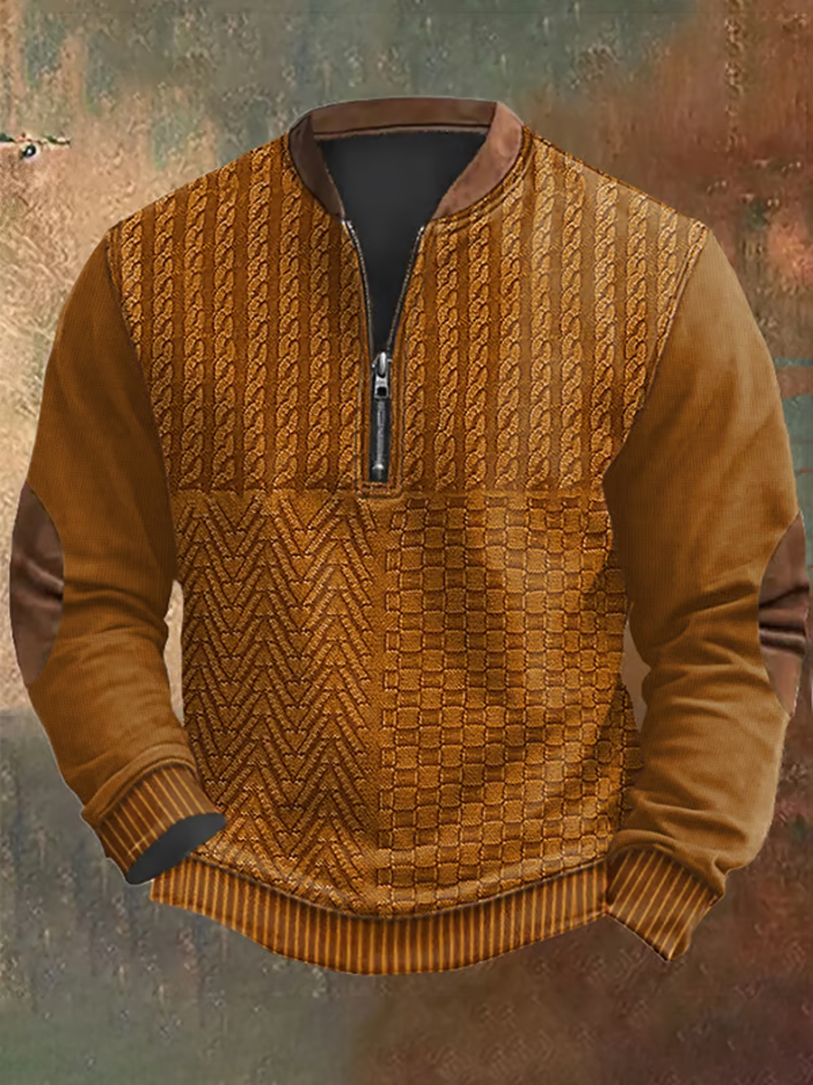 Men's Vintage Cable Pattern Print Casual Zipper Sweatshirt