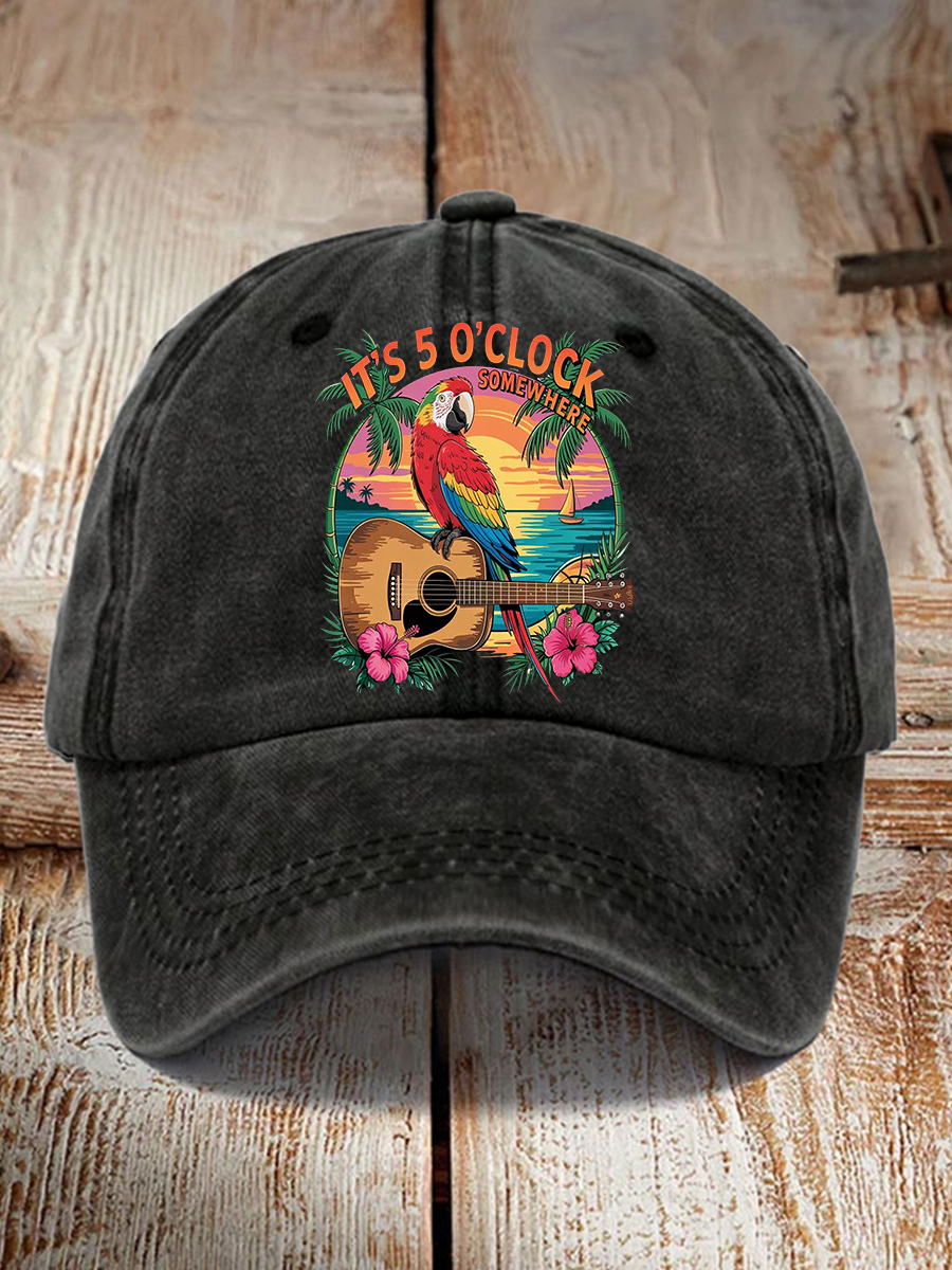 Unisex It's 5 O'clock Somewhere Parrot Print Hat