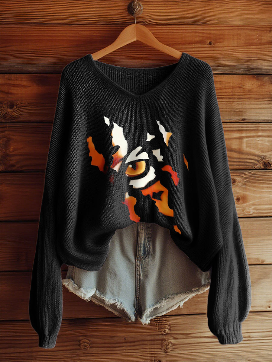 Women's Bengal Cat V-neck long-sleeved tops