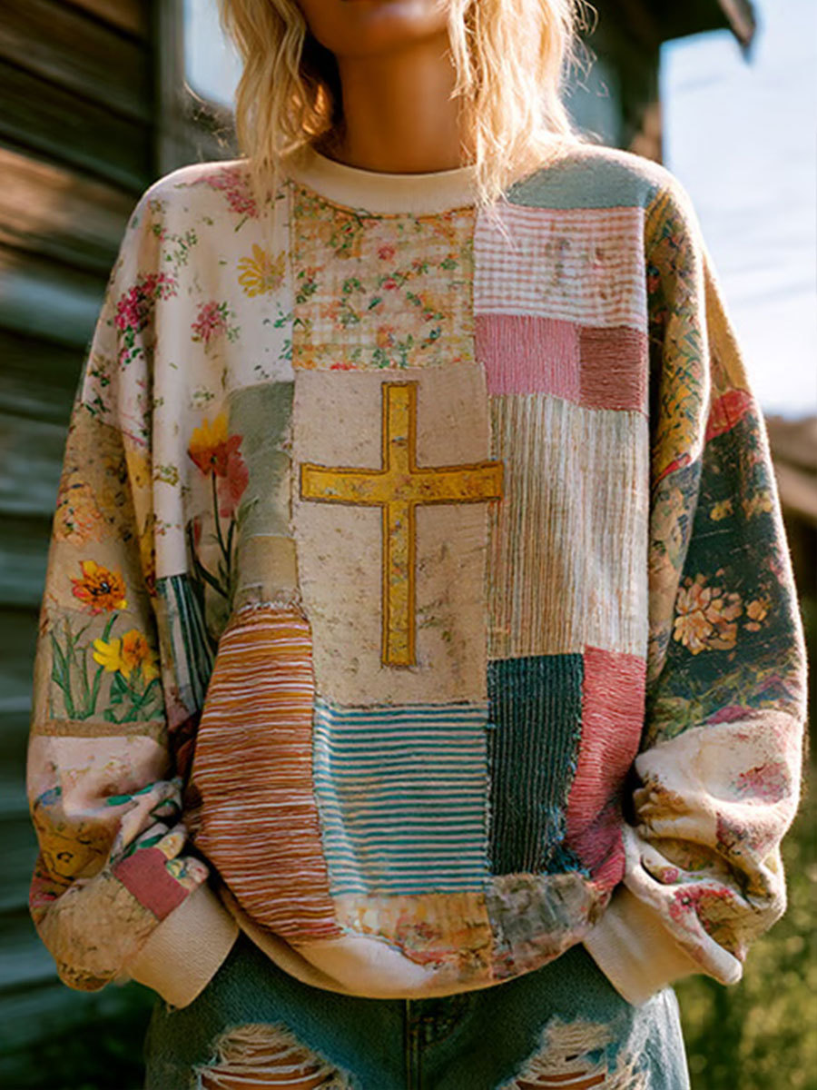 Women's Cross Floral Print Casual Sweatshirt