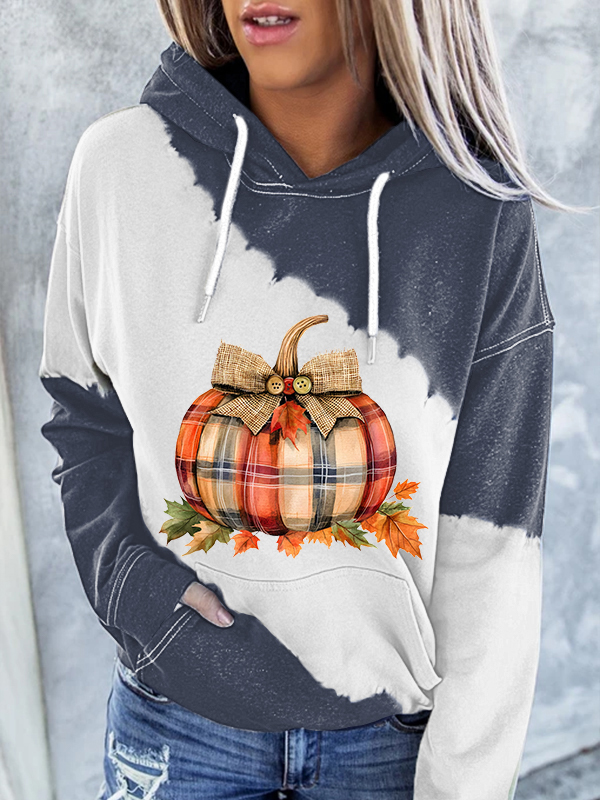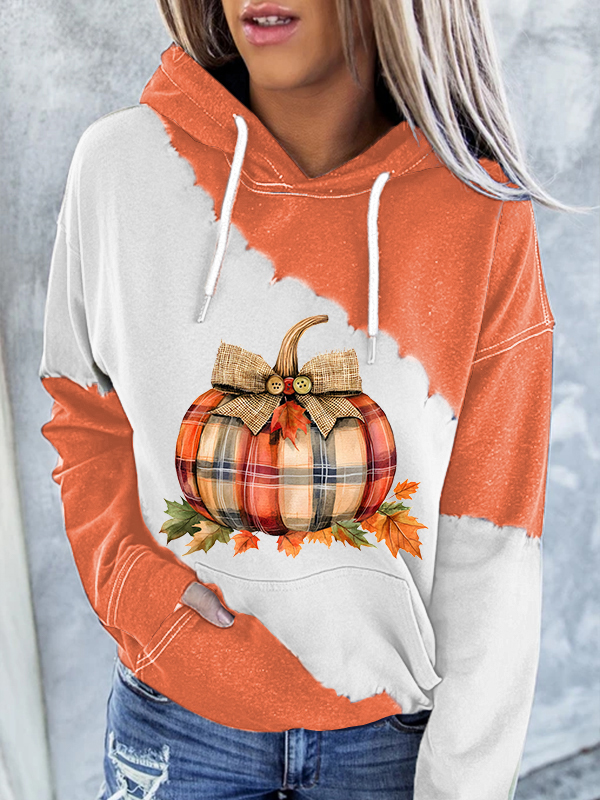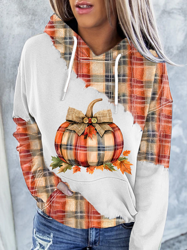 Women's Fall Plaid Pumpkin Print Casual Hoodie