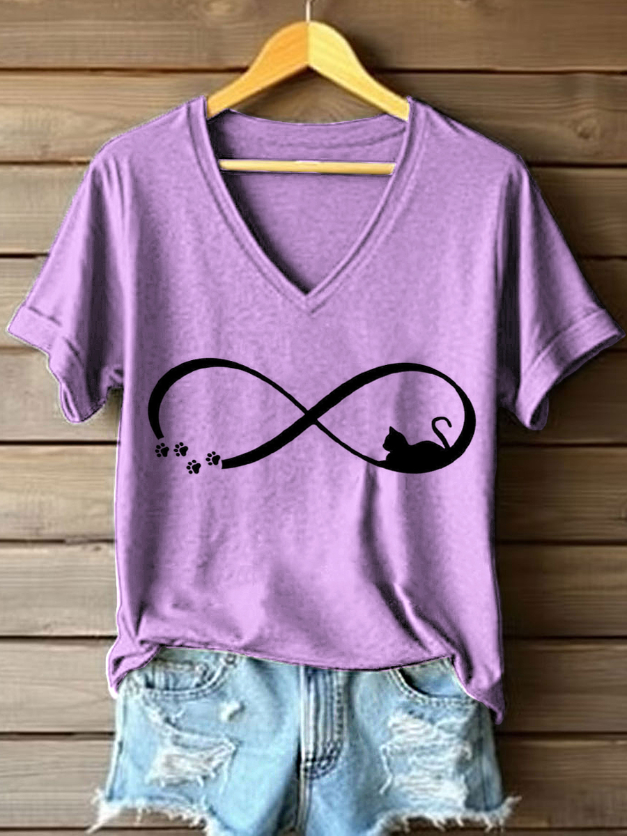 Women's Funny Cat Art Print V-Neck T-Shirt