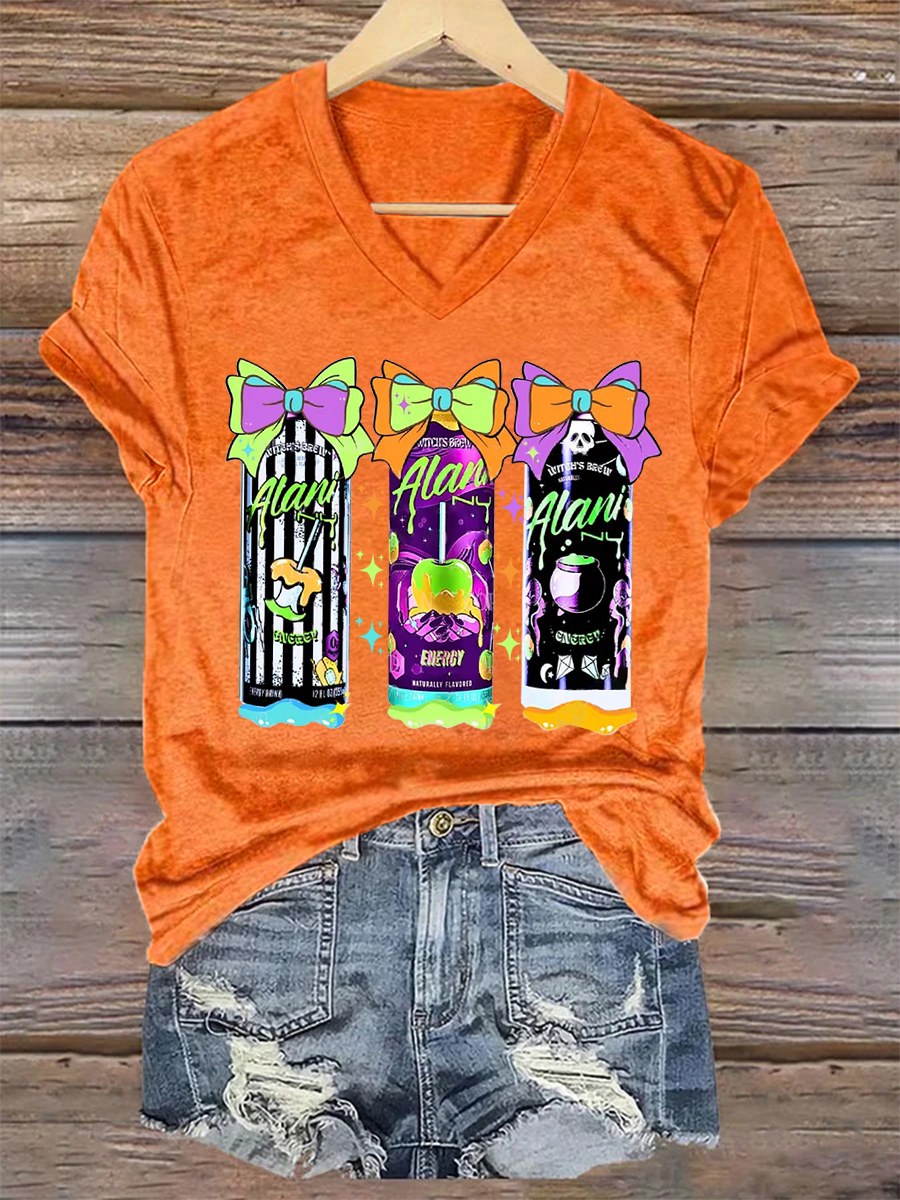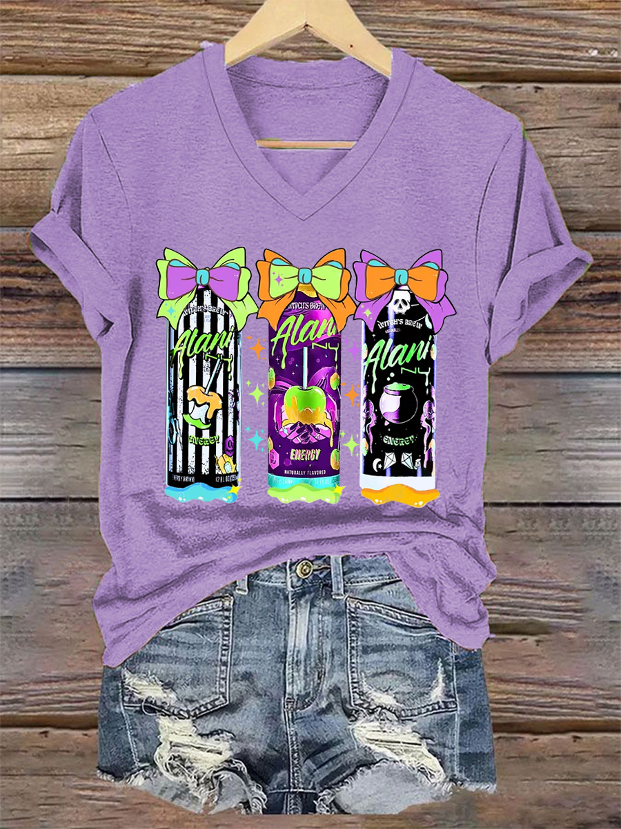 Women's Funny Halloween Witches Brew Alani Casual V-Neck Tee