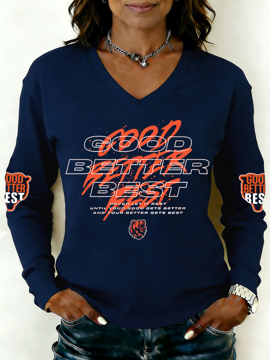 Women's Good Better Best Print Football Fans Gameday Casual Long-Sleeve V-Neck T-Shirt