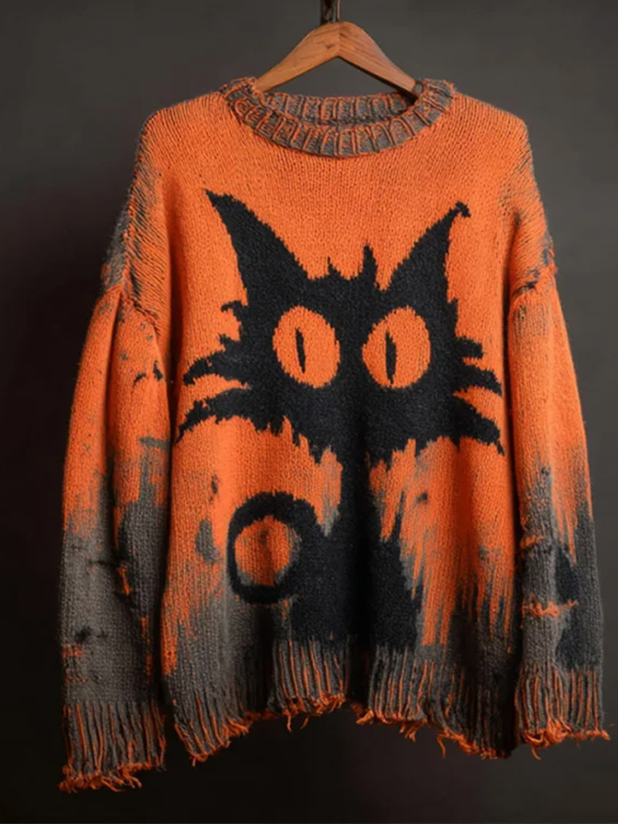 Women's Halloween Cute Witch Cats Art Crew Neck Sweater