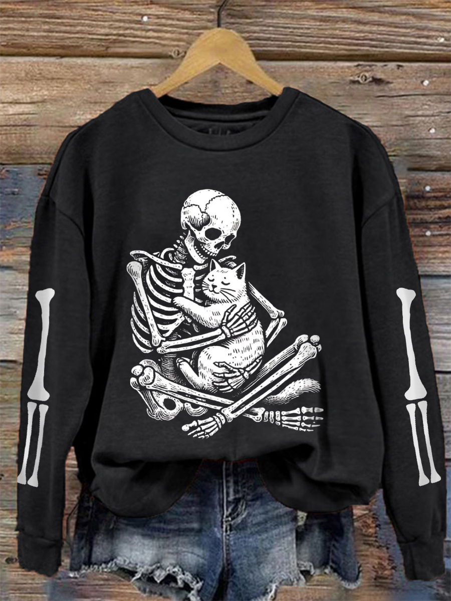 Women's Halloween Skeleton Cat Sweatshirt