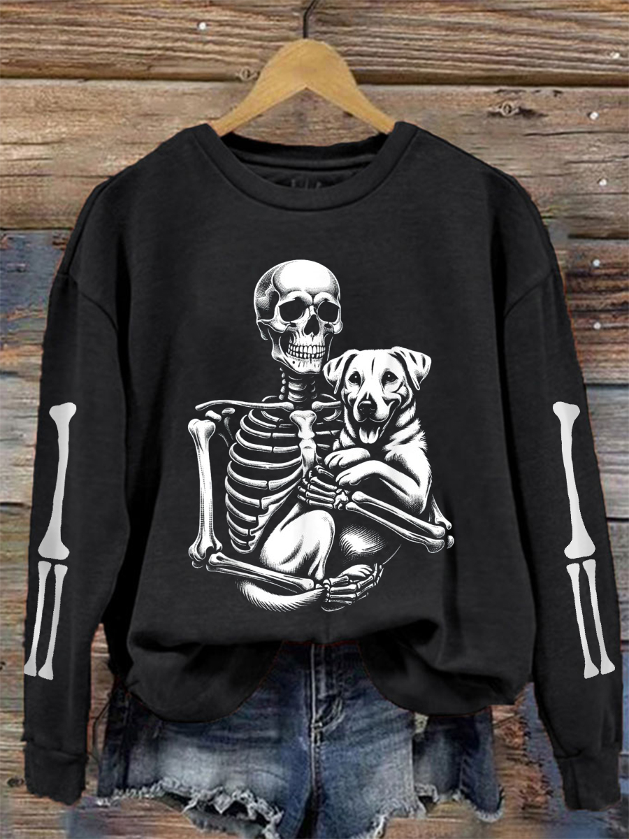 Women's Halloween Skeleton Dog Sweatshirt