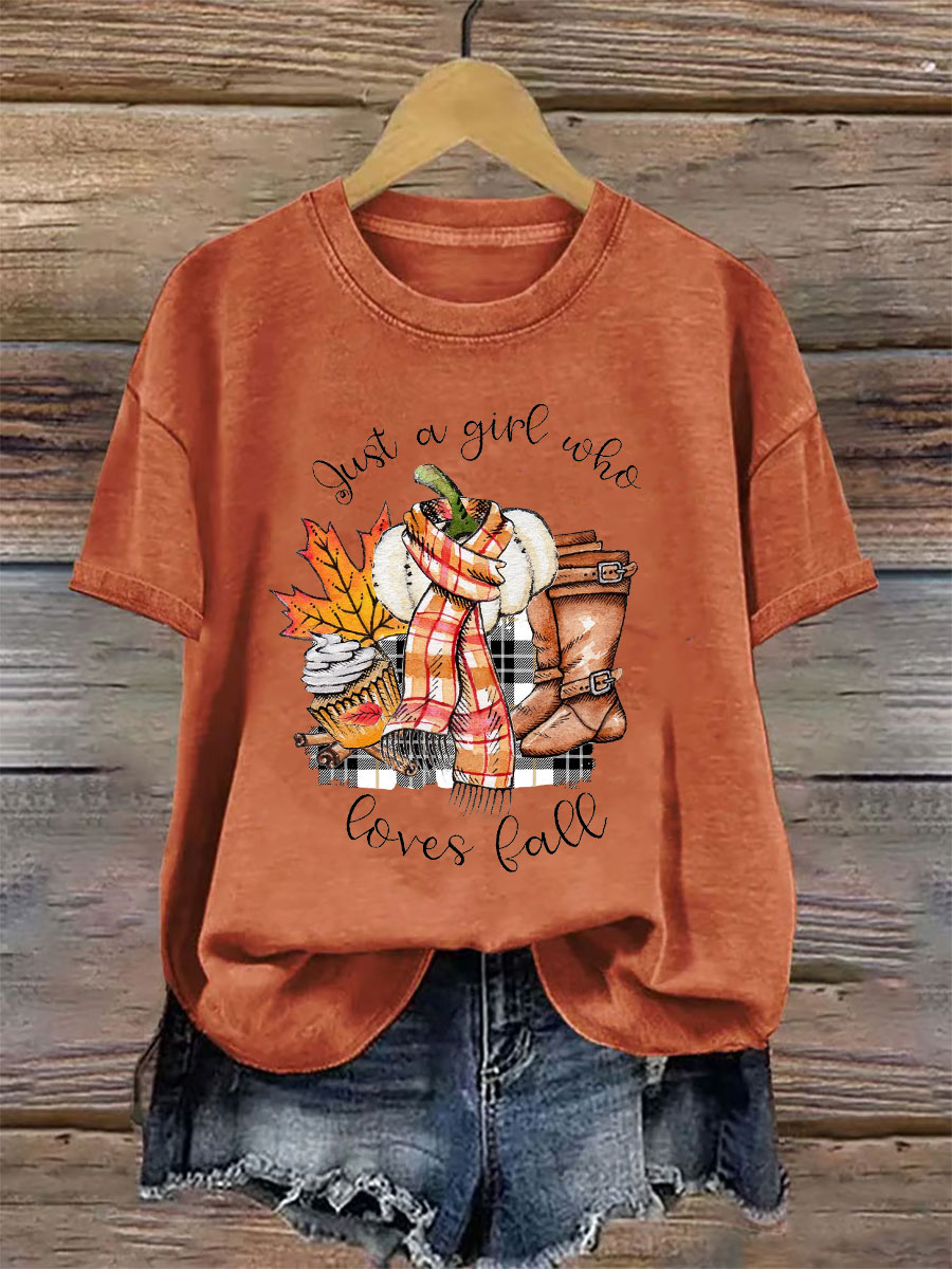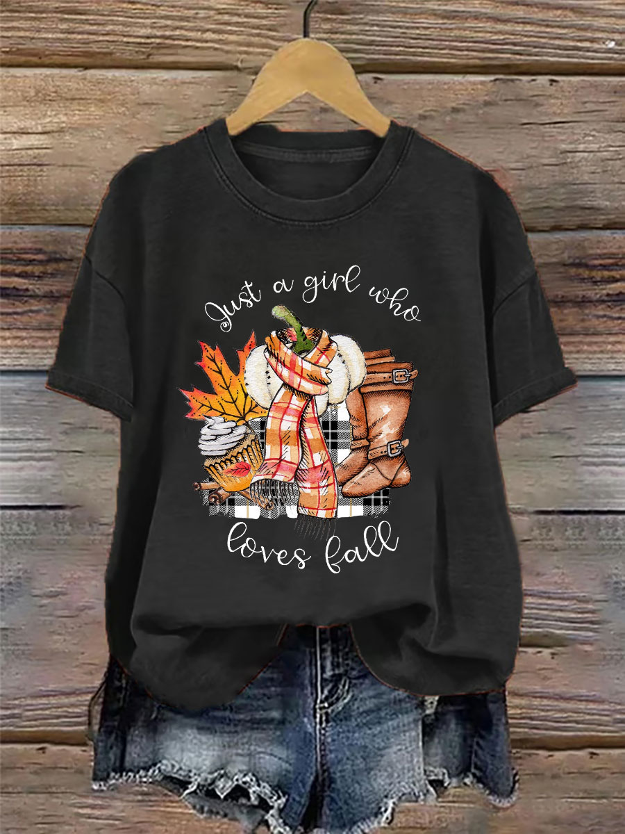 Women's Just A Girl Who Loves Fall Printed Casual T-shirt