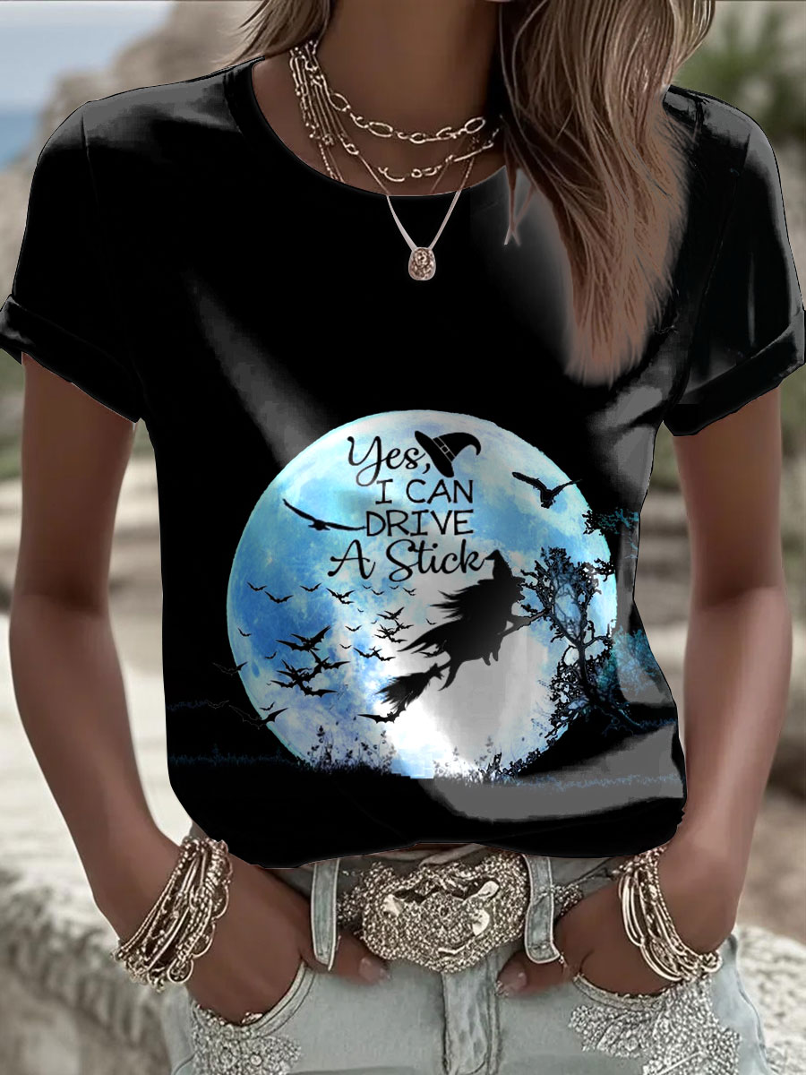 Women's Witch "Yes, I Can Drive A Stick" printed T-shirt